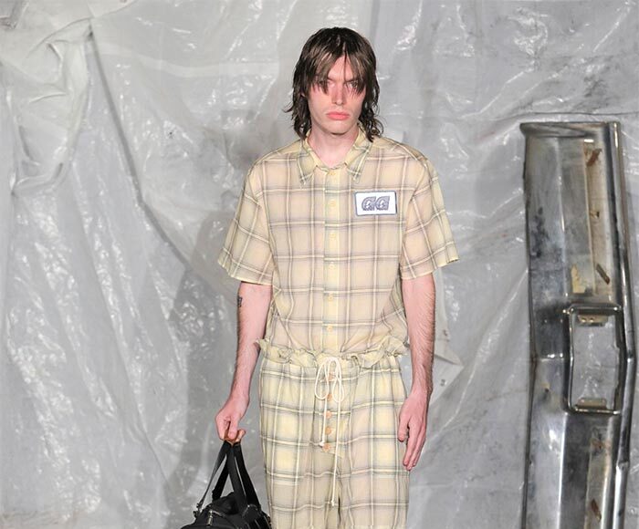 Brooklyn-based designer Gabe Gordon’s eponymous label—worn by cultural icons like Kim Kardashian and Dua Lipa—rose to prominence in 2021 with the launch of his asymmetrical Vortex cardigans, establishing the brand as a fixture in the experimental fashion scene in New York and beyond. In the past two collections, the label has entered a new chapter under the creative partnership of Gabe and his husband, Timothy Gibbons, whose background in costume design, tailoring, and construction has brought a refined structural depth to the brand’s vision. Gordon and Gibbons blend their expertise in knitwear, tailoring, and textiles to craft a distinctive brand that is grounded in sustainability, object connection, and the deconstruction of the false boundaries and embodied potentials of identity. Their work reflects a commitment to craftsmanship and a deep reverence for fashion and costume history.