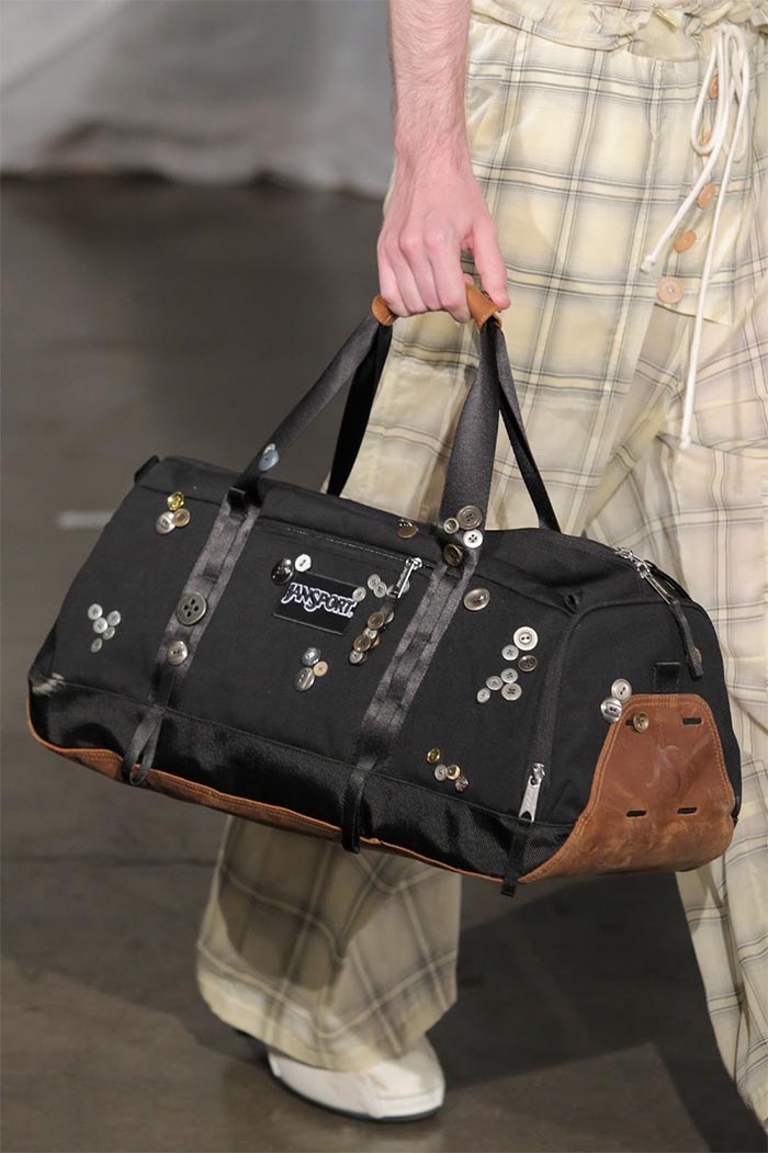 The Clutch Series from JanSport is inspired by the brand’s heritage. With the first ever JanSport bags ever being crafted above an autogarage, the Clutch Series duffle paired perfectly with Gabes vision for his SS26 season, with his collection centering around automotive themes, and his show taking place in an autogarage as well.