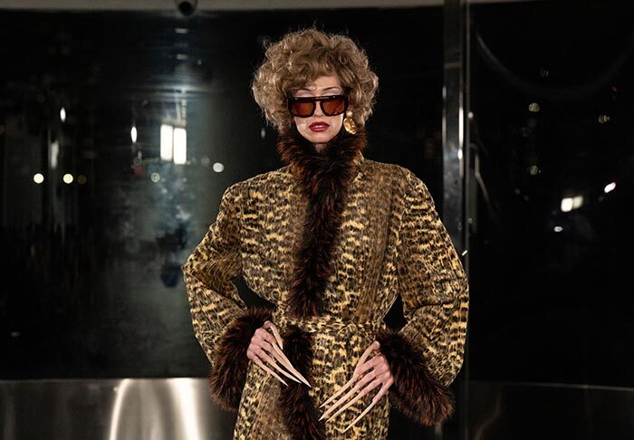 Hair and makeup balanced precision with softness. Some looks featured lacquered styles shaped into folded ribbon-like forms, while others embraced voluminous curls, created a dynamic contrast complemented by diffused rose tones, luminous skin, and graphic liner accents. Beauty details further extended the collection’s dialogue with cultural lineage. Nails by Sojin Oh for Sojinails featured elongated, pointed silhouettes in deep reds and gold tones alongside nude lacquered finishes and striking liquid silver designs, inspired by zhijiatao, traditional Chinese royal nail ornamentation.
