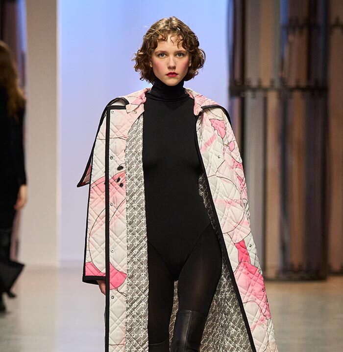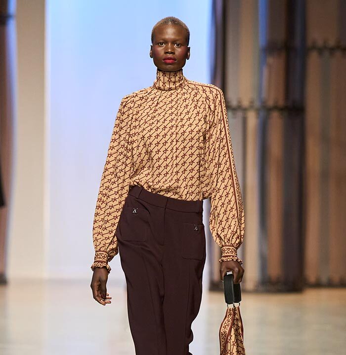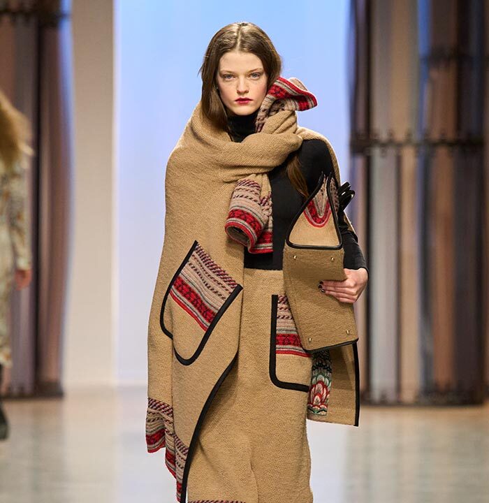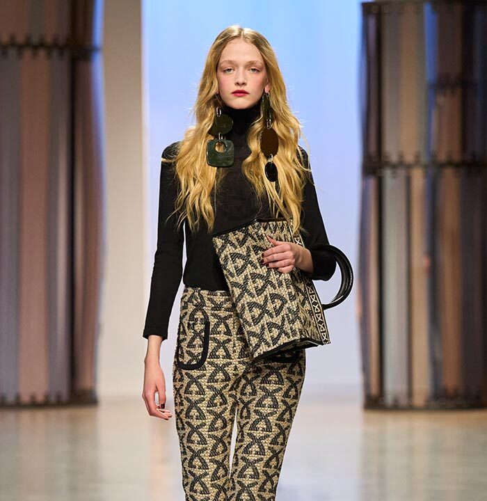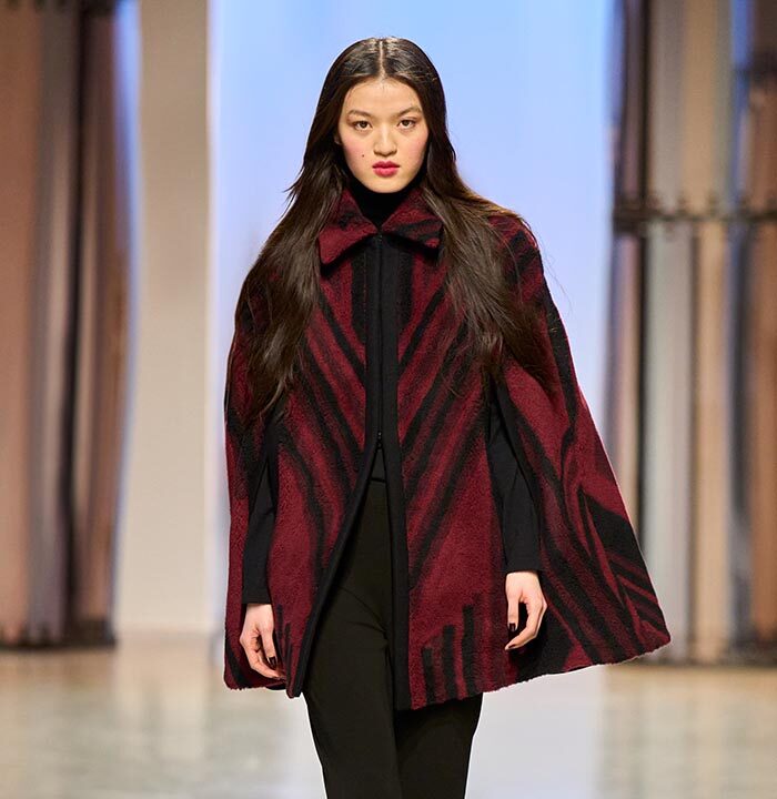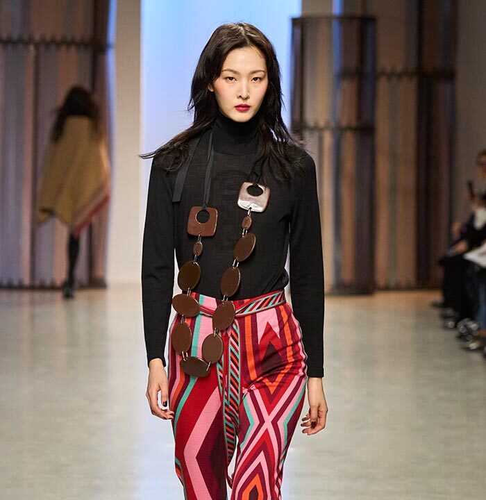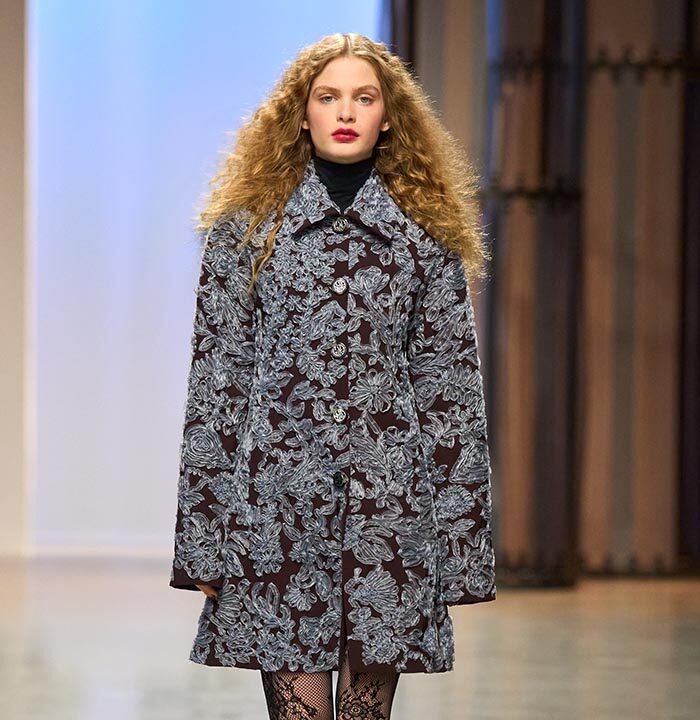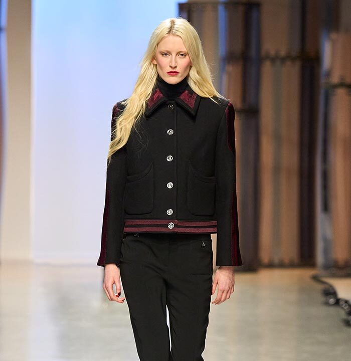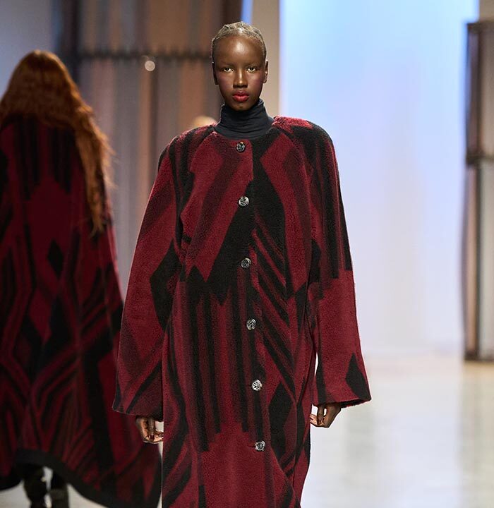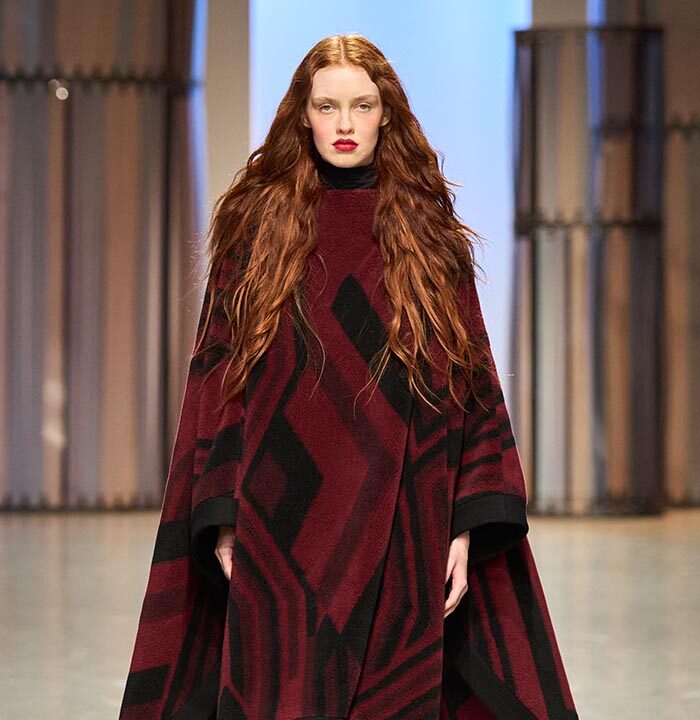 Georg Lux likes to draw inspiration from architecture. For Fall/Winter 2024-25, he refers to the ‘‘Ennis House’’ designed by Frank Lloyd Wright, in the Los Feliz district of Los Angeles. It is one of a series of buildings known as ‘‘textile block house’’, featuring embossed facades inspired by the Mayan remains of Uxmal, in the Mexican state of Yucatan.