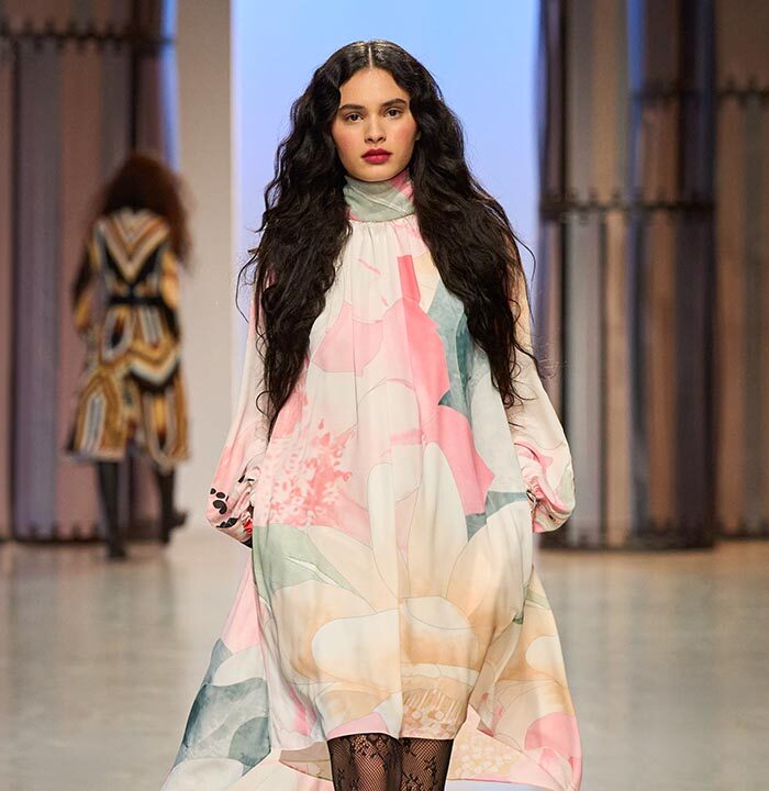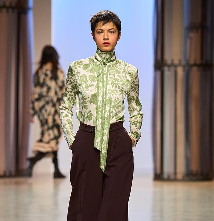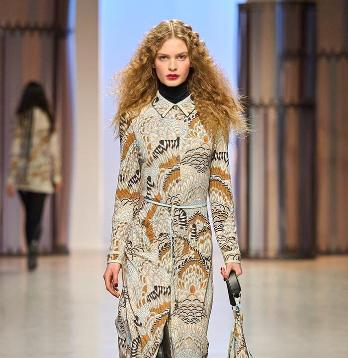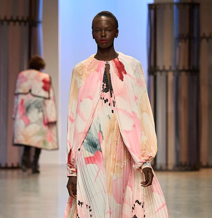 Like the cactus fower, which has become one of the season’s key prints and changes size depending on the model: it can be found in an XXL format, so as to be no more than an illusion on the long, evanescent dresses that are the House’s signature. Each outft is an invitation to travel.
