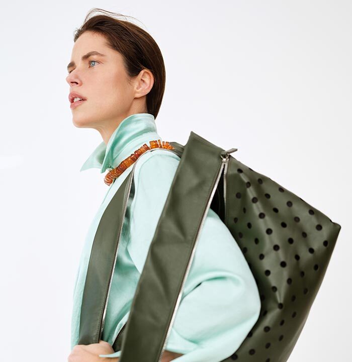 The collection speaks to feminine power through deliberate tension: clean lines meet subtle disorder, sophisticated layering carries a hint of chaos. Every piece feels unfinished by design, inviting the wearer to complete the motion, to bring their own pace to it. A debut hue—mint blue—runs through the collection, vivid yet calm, underscoring the collection’s balance of energy and serenity.