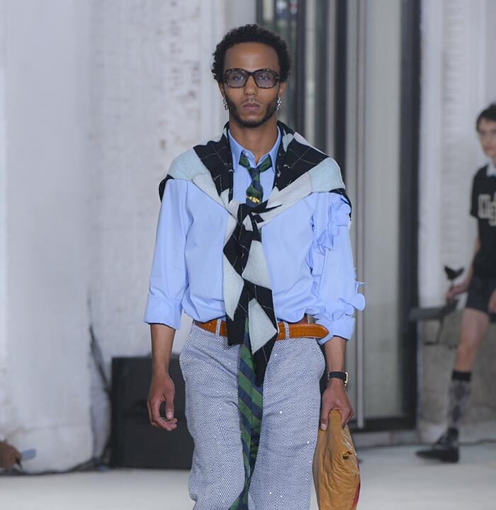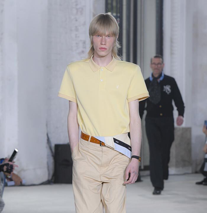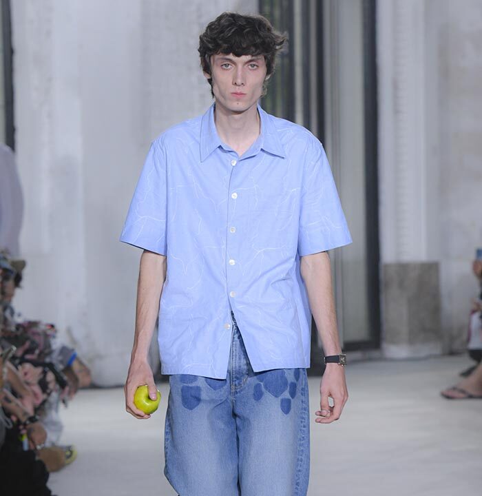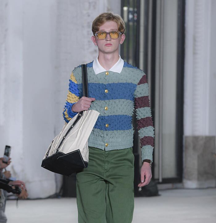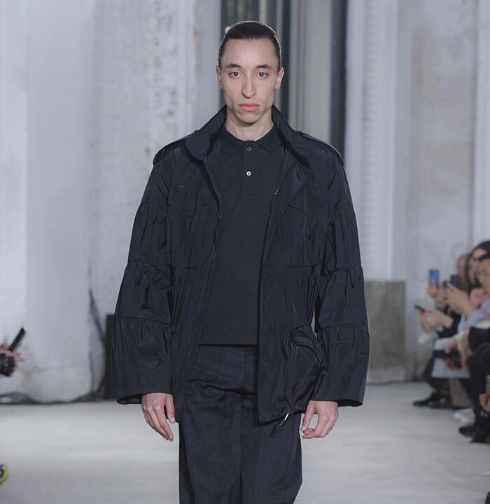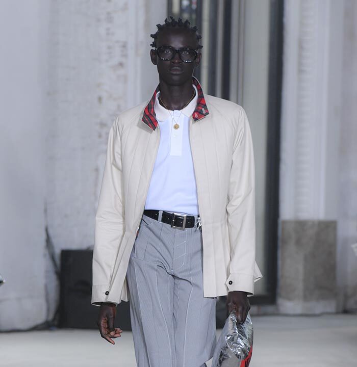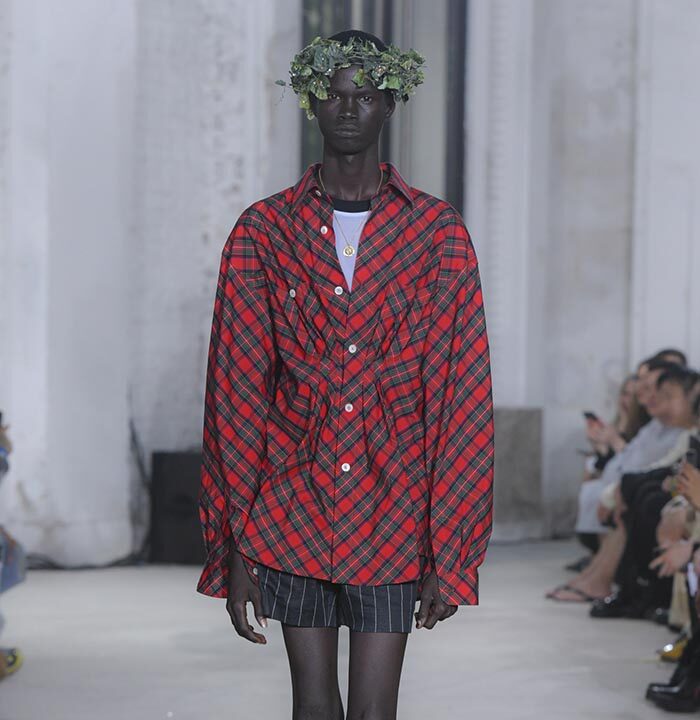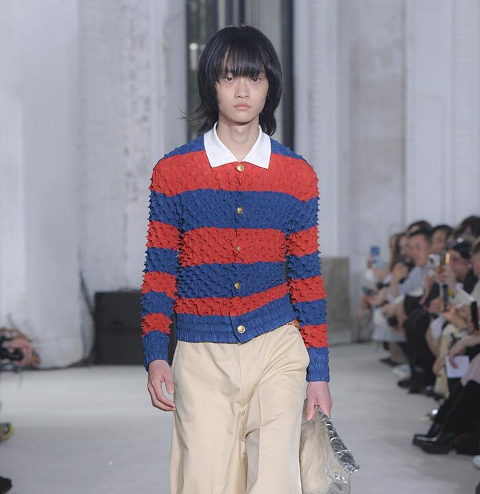 The imagination that questions the existing can weave different stories. The Spring/Summer 2025 collection unveiled on Haussmann Boulevard in Paris is filled with straightforward reinterpretations that directly confront traditional and Ivy styles. With his usual light touch, the designer turned his gaze to the ‘style’ like mature ivy and the items and outfits that symbolise them. He unraveled navy blazers, marine stripes, and argyle patterns, not only slicing through clichés but also technically transforming forms with smocking and deforming classics with accordion pleats, liberating concepts effortlessly. This playful collection, shedding the abstraction of style, can be seen as a meeting of familiarity and artistic dressing. Shinpei truly envisions the beginning of another tale.