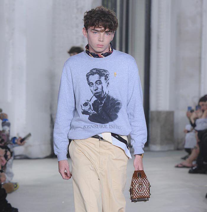 Collaborations, for M A S U, represent a contemporary approach that unleashes his vision into a broader territory. Since the 1950s, incorporating American culture and permeating Japan with American traditional style, the VAN JAC by Kensuke Ishizu, who led Japanese fashion trends, we paid homage to Ishizu by creating a sweatshirt printed with his portrait in the style of a Beethoven sweatshirt (Great Man Sweatshirt), not only with a paper bag-style clutch but also revolutionizing Japanese fashion and paving the way for the future. Following the 24FW collection, VERDY depicts MASU BOYS CLUB lettering and emblem, along with ivy graphics wrapping around the arm, while memorial pants are adorned with words related to VERDY and designer John, a friend who connected them.