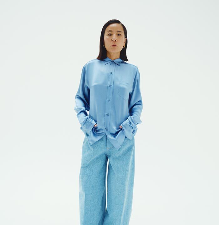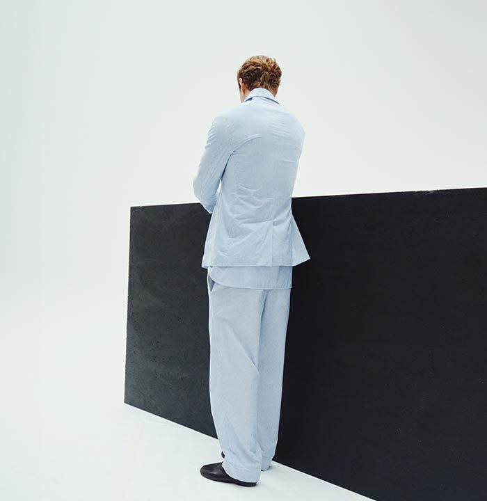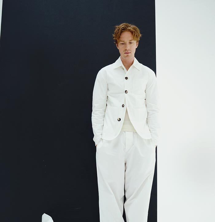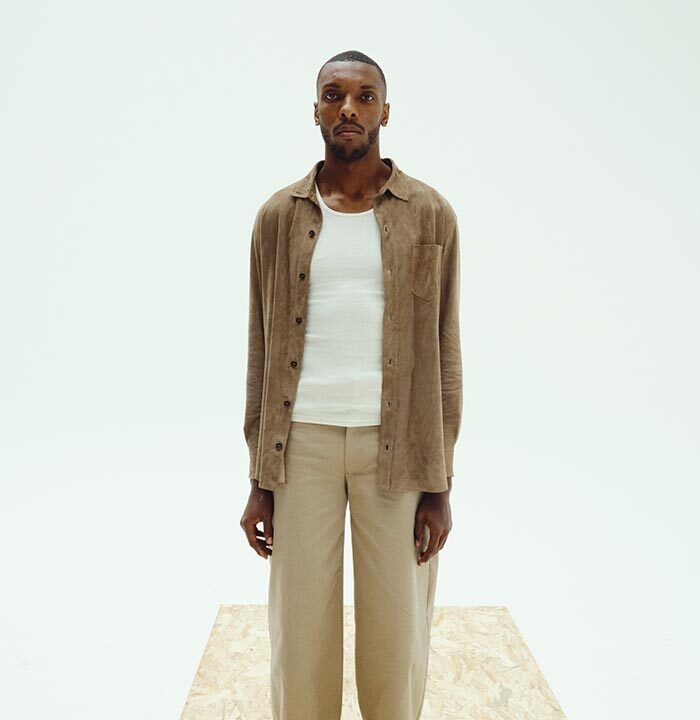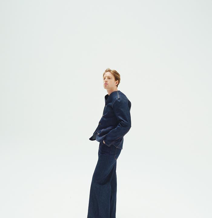 As always, workwear is well represented, now reinterpreted in lightweight cottons and translucent silks. Denim, also, continues its integration into the collection. A 70s bootcut jean and collarless jacket have been modernized in raw denim, while overshirts in a washed example of the fabric can be thrown on to create an easy, denim-on-denim look.