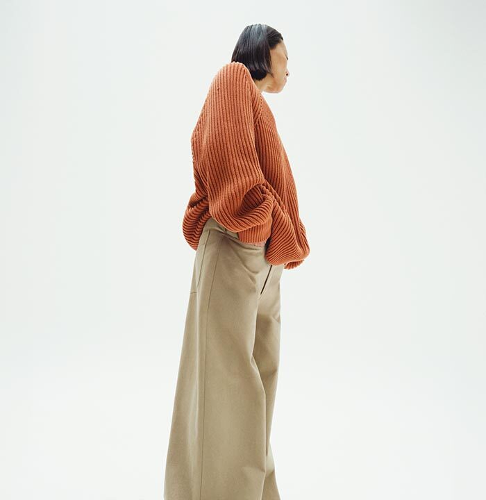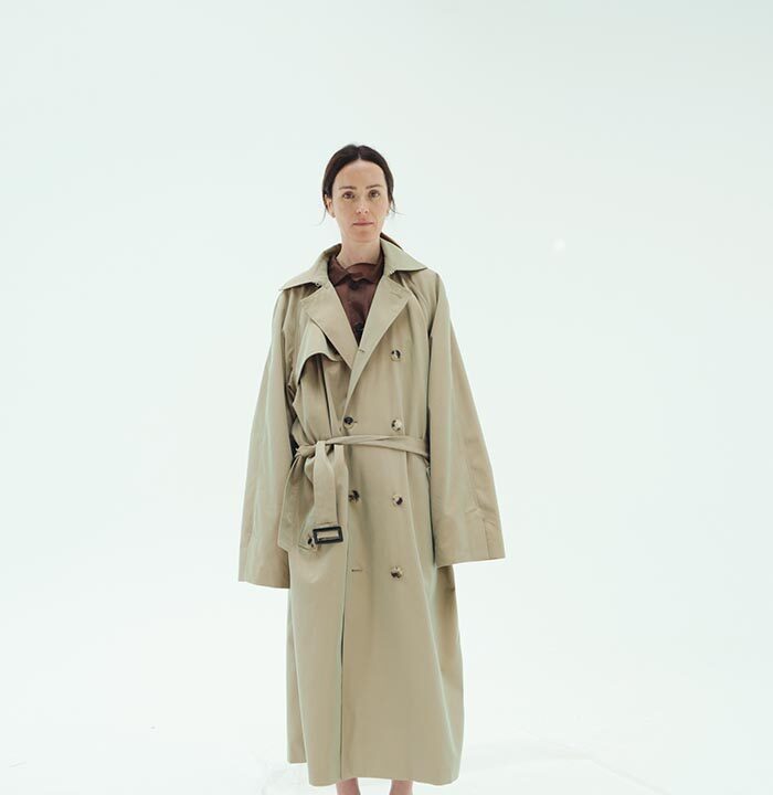 Ample silhouettes convey confidence and immediate luxury, especially in the outerwear pieces. An elongated hooded parka in wool-silk and an unlined tonic-cotton trench show off volume in a gust of wind while insuring against a sudden downpour.