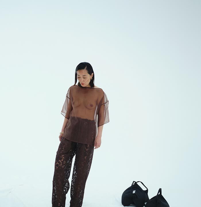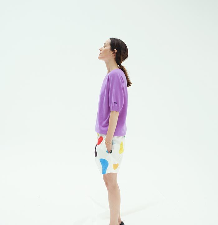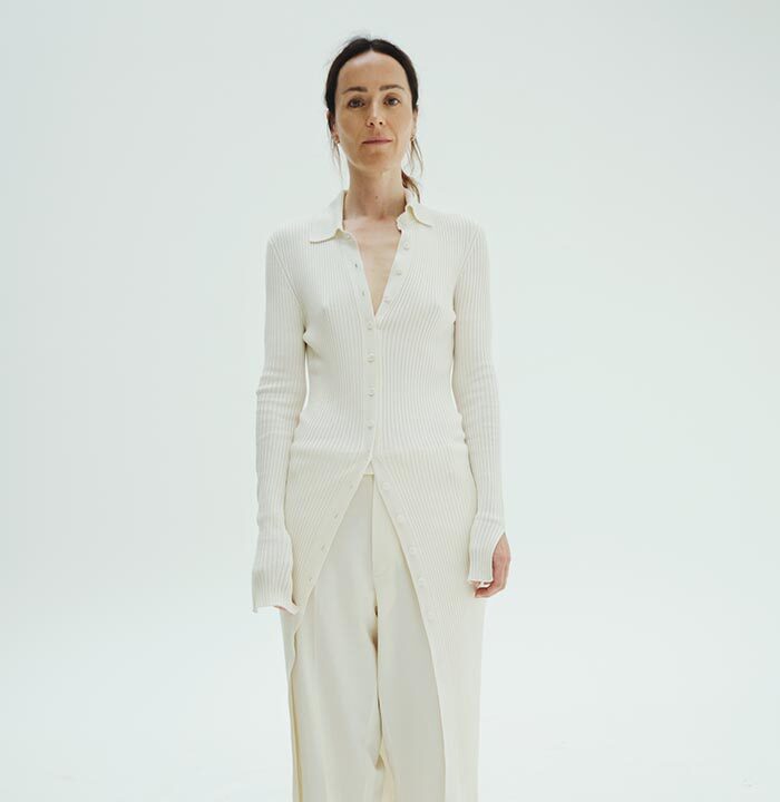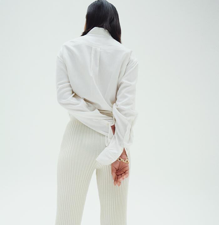 For SS25, SEASON 7’s materials are as vernal as the palette. Crisp cotton, cotton lace, tropical-weight wool, and silk knitwear lie cool against the skin and mellow out the sun. Drawstring trousers and shirt dresses in ultra-soft lamb suede are a sophisticated springtime alternatives in ice grey.