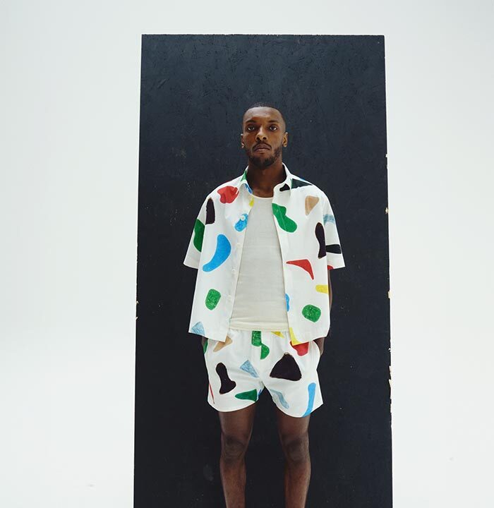 White and off-white establish the season’s color foundation. Sea and sky blues, reflecting the Mediterranean, provide the next layer. Bright purple, terracotta and a variegated stone print add bold accents. Finally, two of Meta Campania Collective’s signature colors, dark chocolate brown and midnight blue, return to connect the wardrobe to past collections and collections to come.