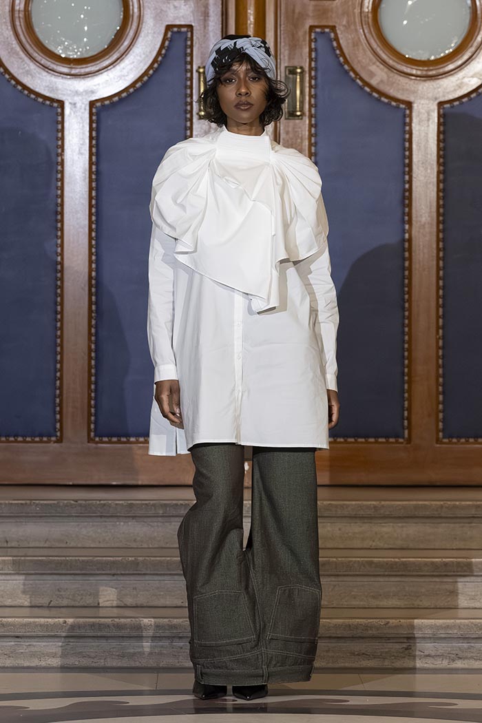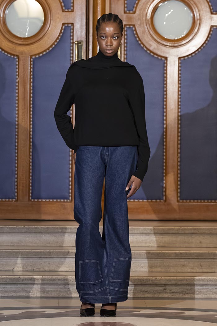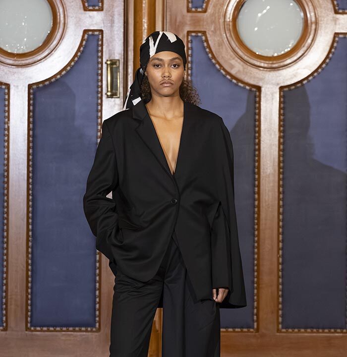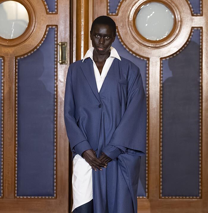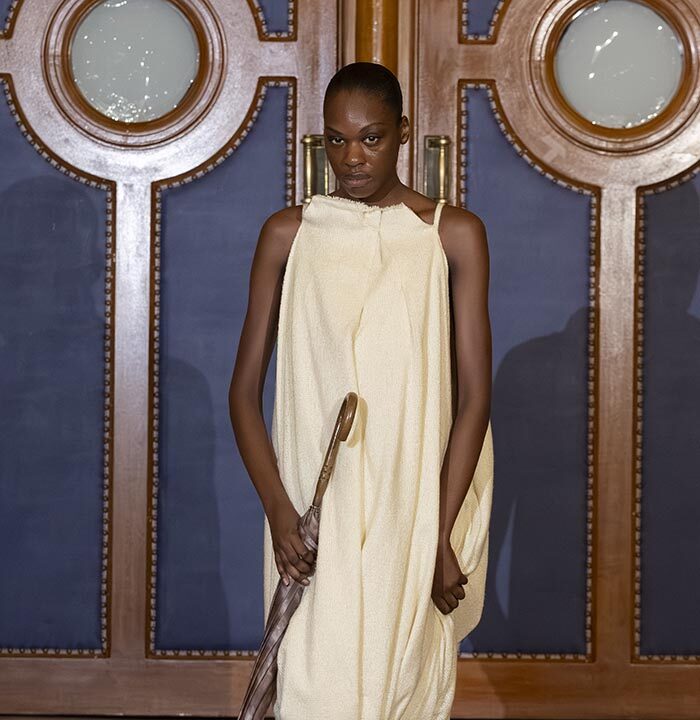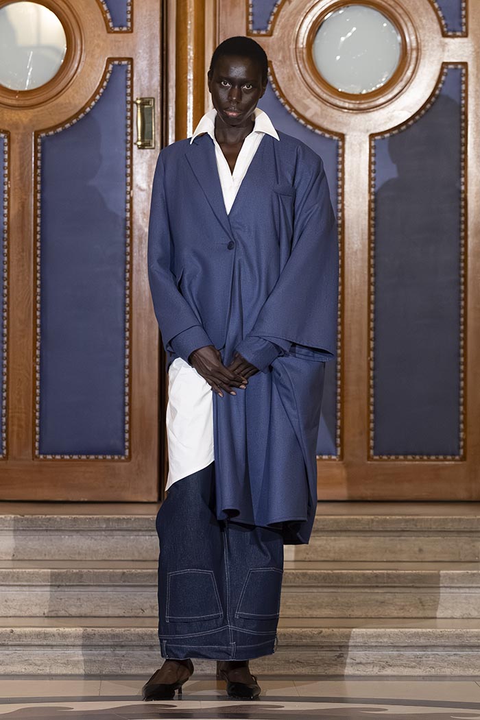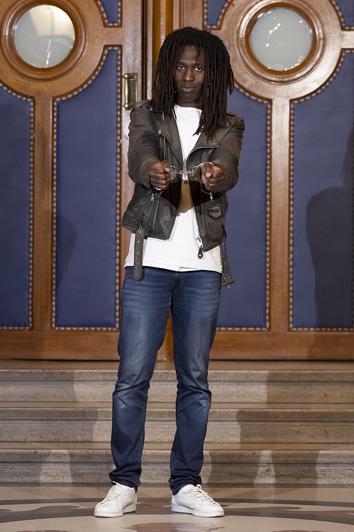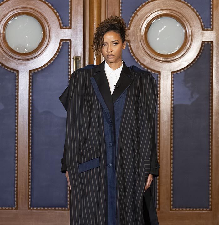 Through this presentation, Mossi Traoré, founder of the brand, highlights his journey in an unexpected way. The show unfolds as a symbolic trial where creativity, personal history, and a critical perspective on fashion intersect.