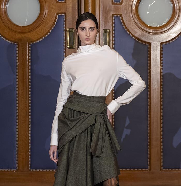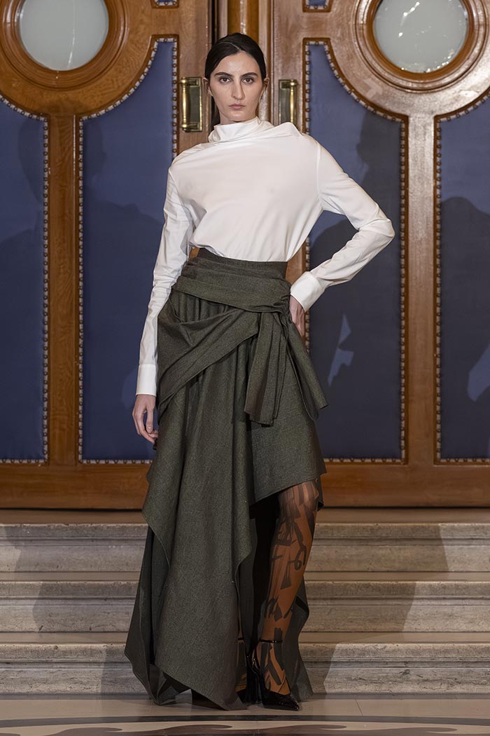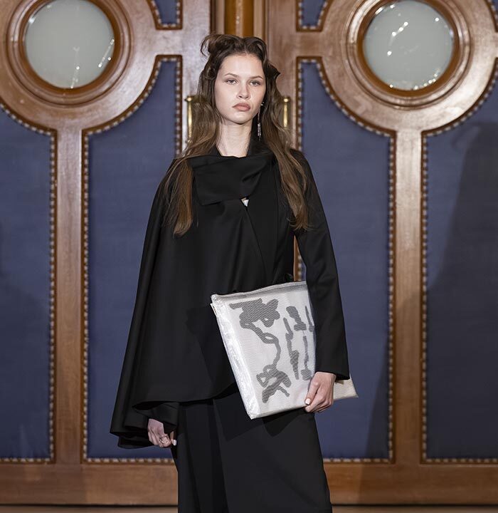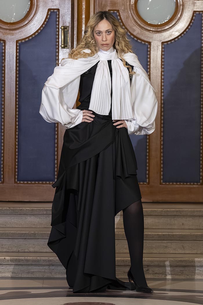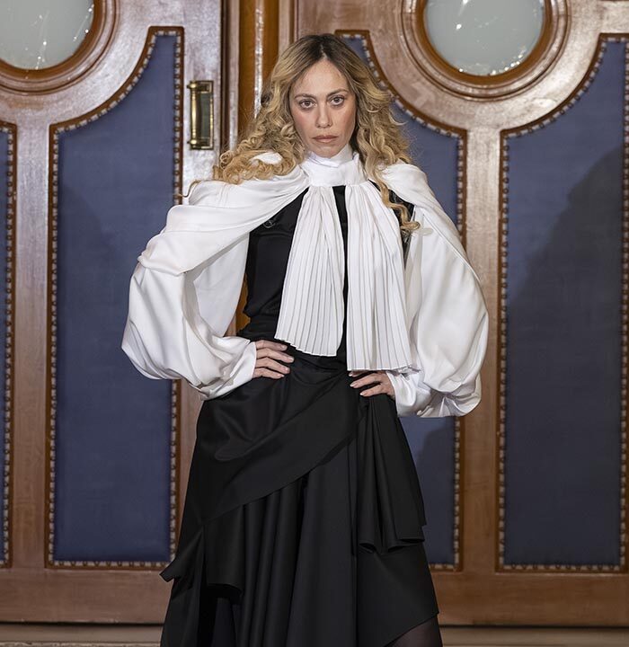 Within this judicial theatre, each appearance and each silhouette illustrates the arguments of both the prosecution and the defense, making the collection itself the heart of the debate. Fashion becomes the subject, the language, and the evidence.