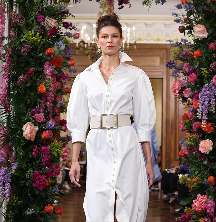 LOOK 12 Pure Elegance: A White Puff Sleeve Shirt Dress Crafted from Luxurious Italian Cotton Shirting