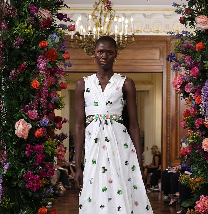 LOOK 14 Blooms in Linen: A Long Sleeve Floral Embroidered Shirt Dress with Chic Cut-Out Details
