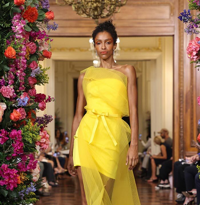 LOOK 17 Radiant Elegance: A Yellow Pleated Tulle Draped Dress with a Mini Base