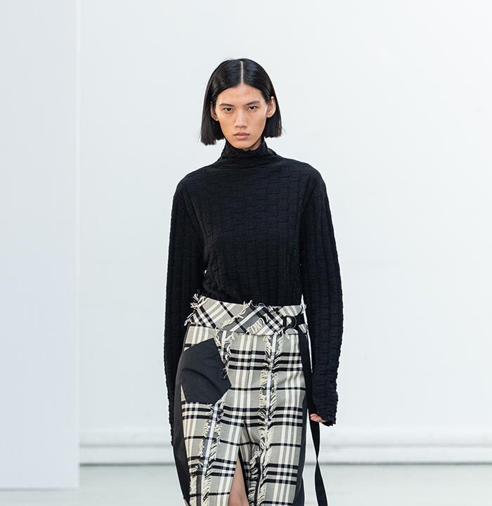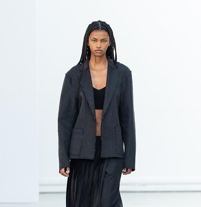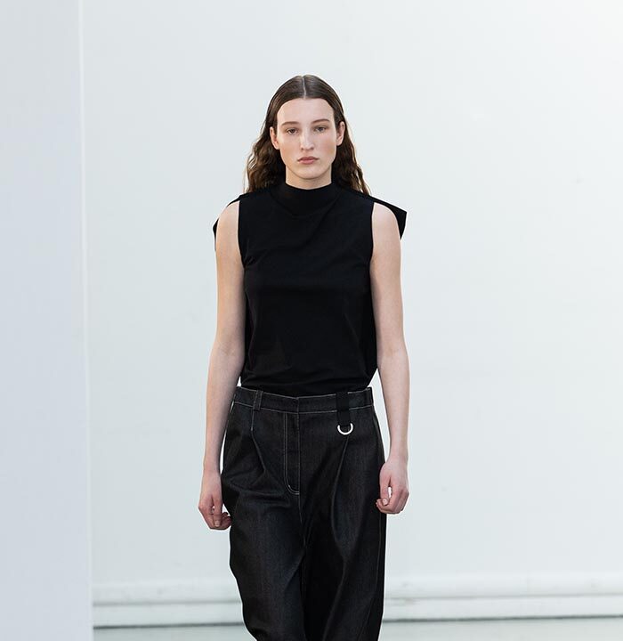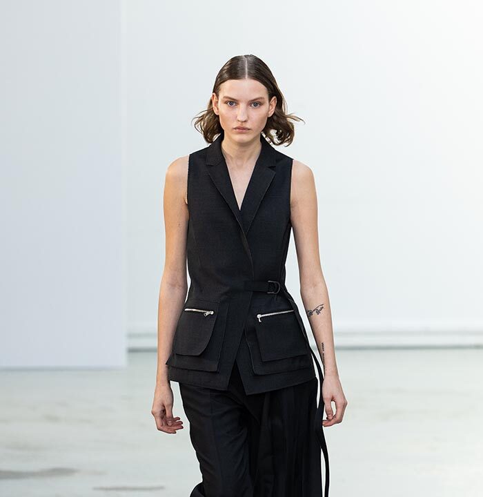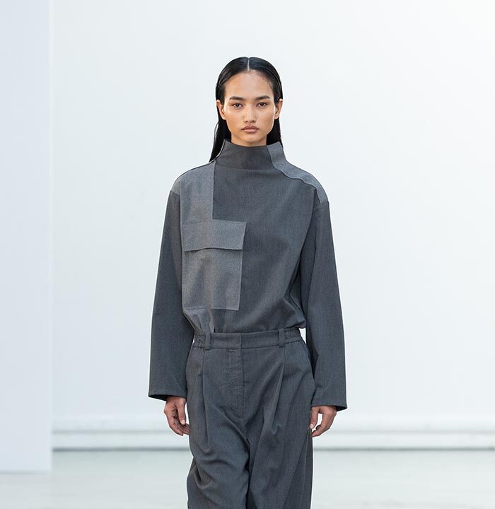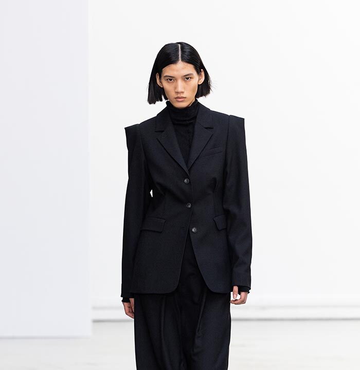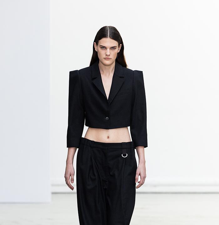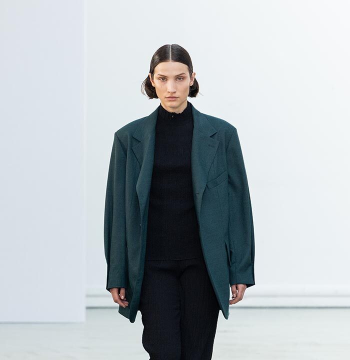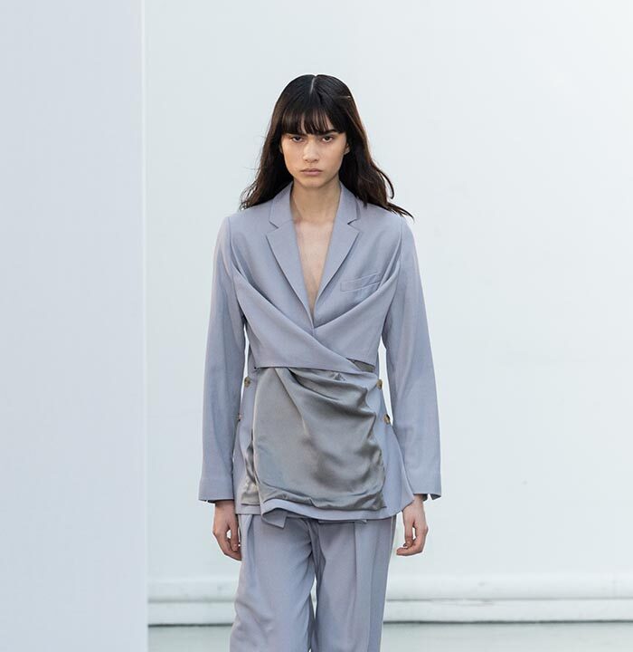 The artistic direction proposes to explore shaded tones like true colours while mixing genres. The silhouettes are genderless, powerful, sublimated by an intense casting. The cuts of the collection are strict but embrace delicate materials, allowing Sheila Single, in charge of styling, to create intense silhouettes. Once again, this season Nehera explores the perfect fit of the tailoring look through adjustable trousers, tops and jackets.
