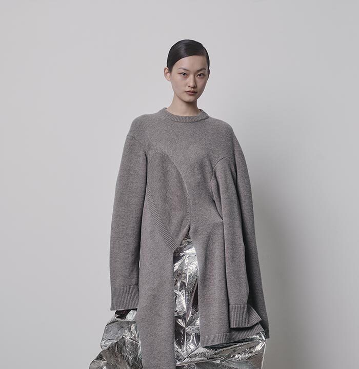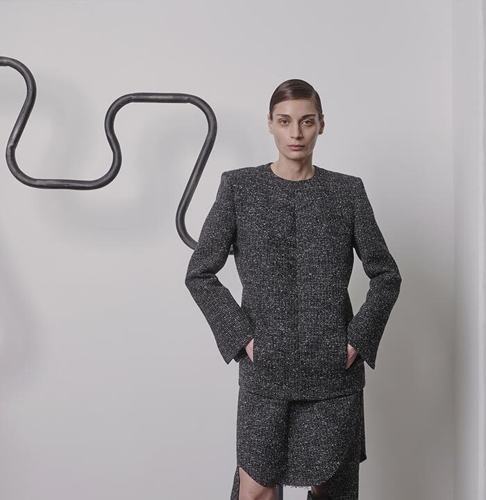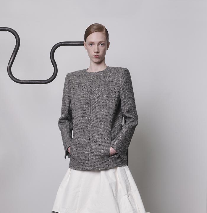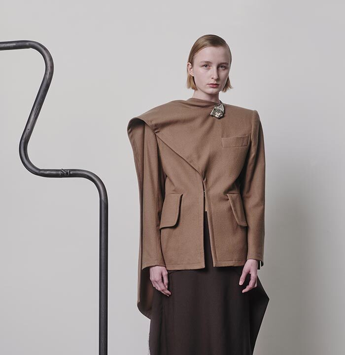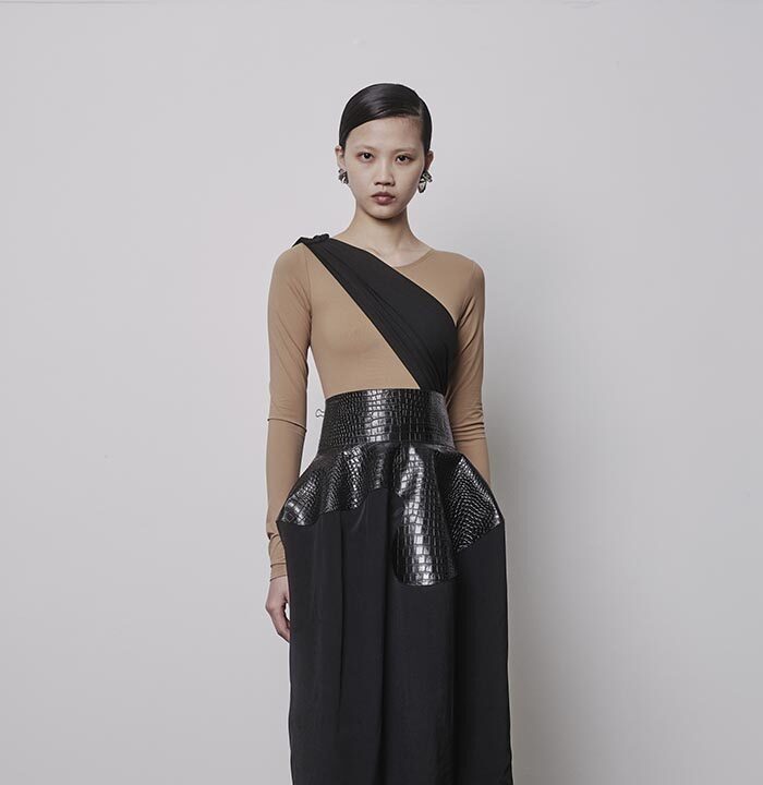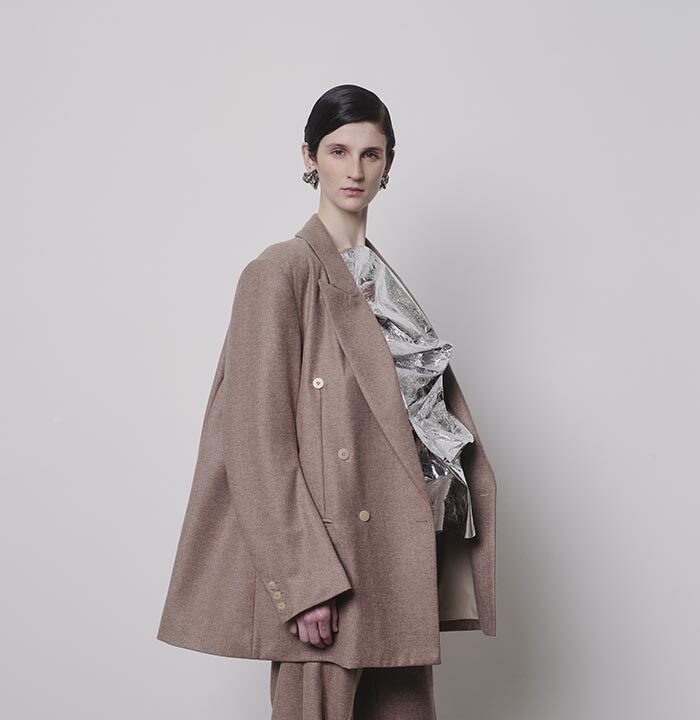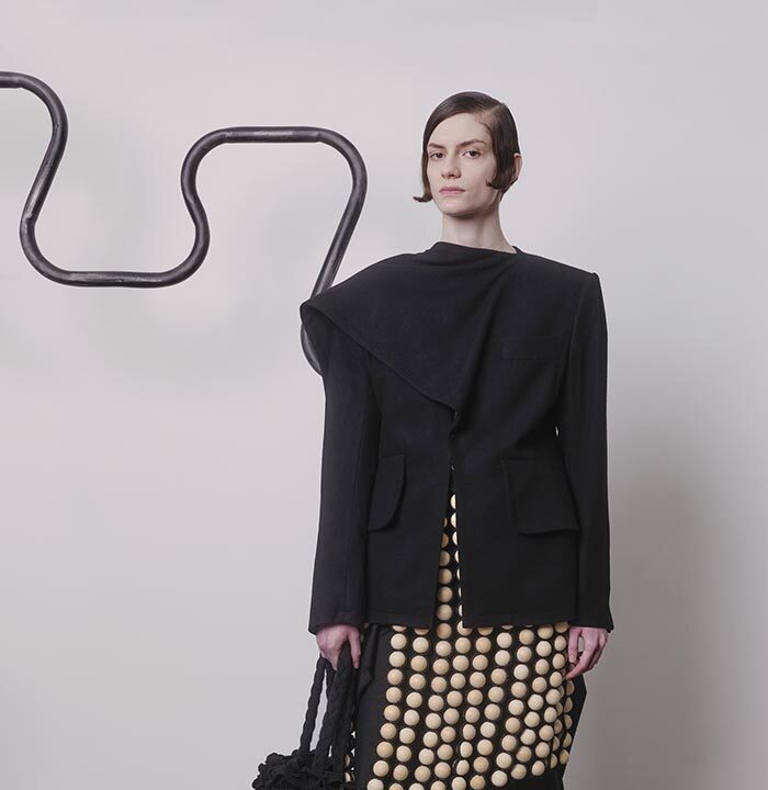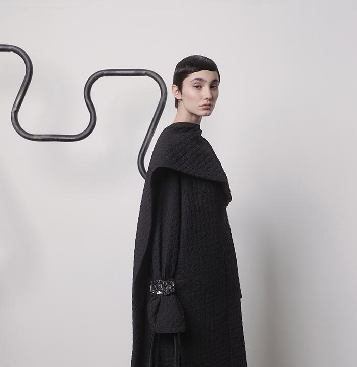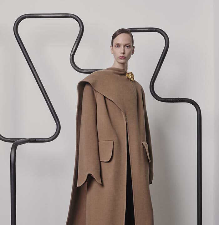 An extension of fabric, thrown over the shoulder, makes a garment appear out of nothing but instinct. Solid shapes, cut from cloth, are draped so that their solidity gives way to something more fluid. Somewhere between sophistication and naivety is your ideal way of carrying yourself. When it becomes part of you, like a second skin, there will be no need for other adornments.