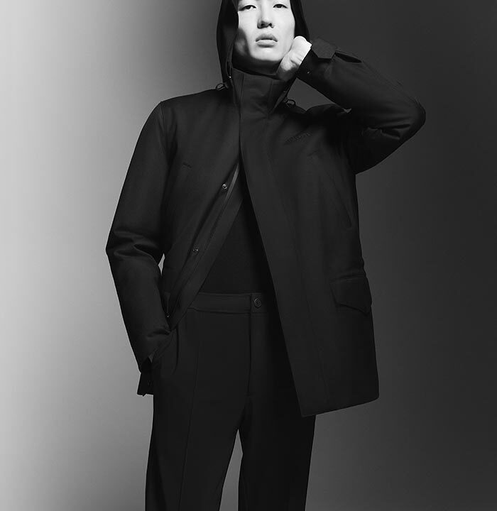 The styles in this collection offer lightweight protection and are travel ready for jet-setting fashion enthusiasts that want to combine style and practicality to stay protected from the elements without compromising on comfort. Discreet tonal branding complements the clean lines and modern aesthetics of each piece, allowing expression of style with subtlety. Elevating the overall look, every detail is meticulously coated in black rubberized finish and Aqua-Guard zippers to maintain a sleek appearance.