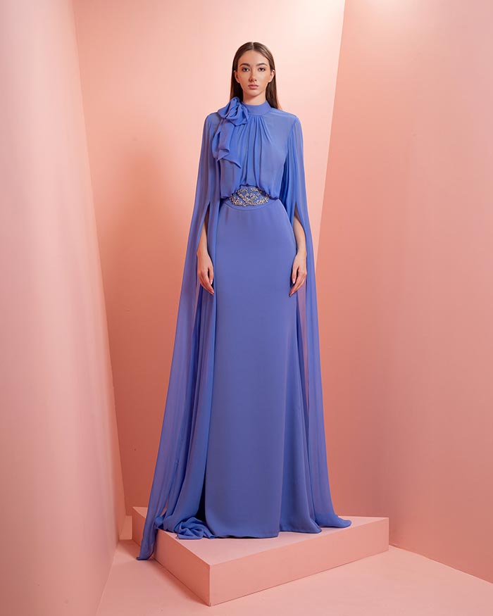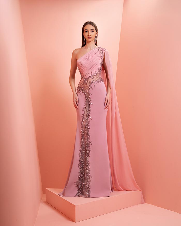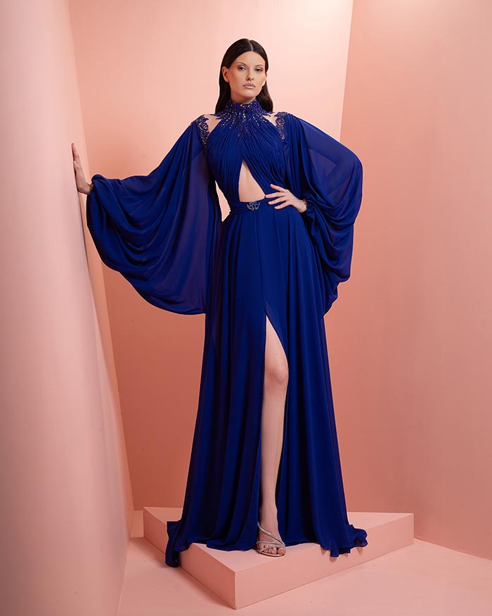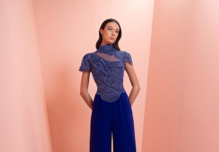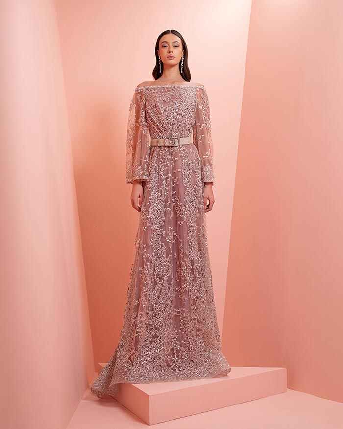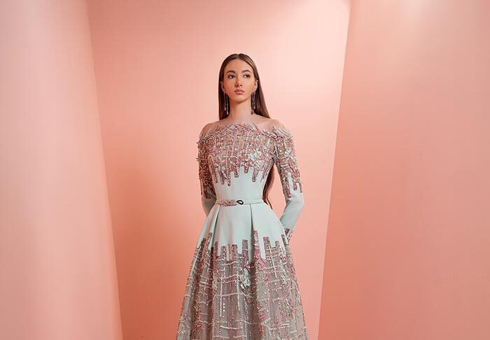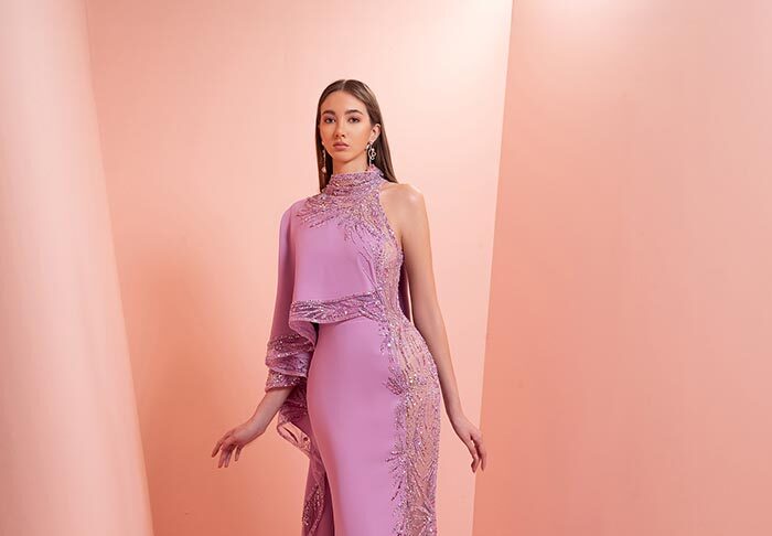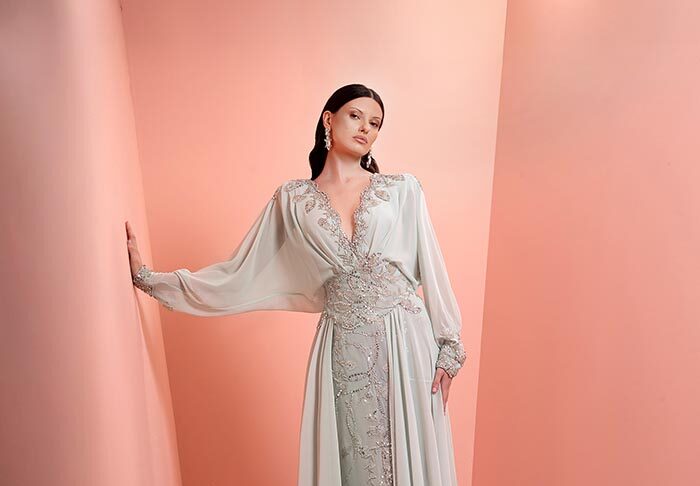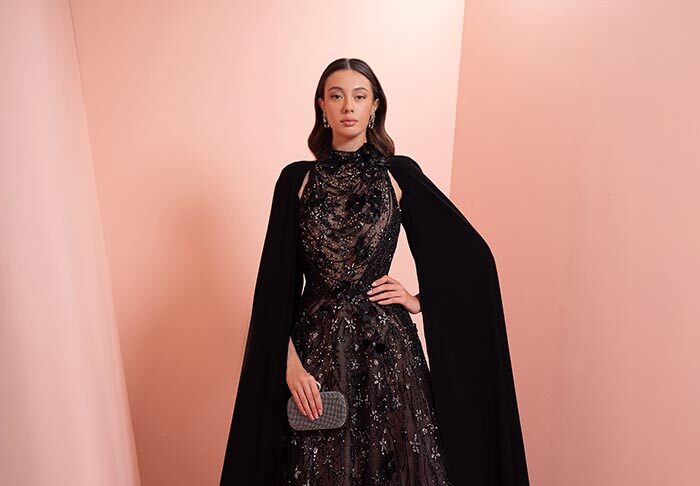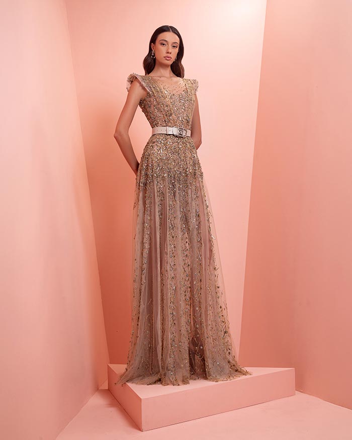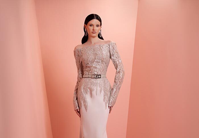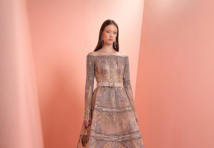 “Nuance” is a meditation on gradations. In color, it explores transitions from soft to bold, sometimes within a single garment, where hues merge in a living dialogue. In fabric, it dances between the delicacy of crepe, chiffon, tulle, and lace, to the ethereal flutter of feathers and the sparkle of embellishment. Each piece unfolds a different mood, offering women a spectrum of choices for different moments of life.