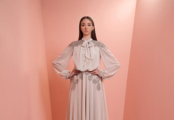 Lightness is the thread that ties the collection together: garments that feel effortless, designed for celebrations, for women of every age who desire elegance and ease in equal measure. “Nuance,” is fluid, luminous, and timeless, an invitation to step into a spring evening or a summer night with unspoken grace.