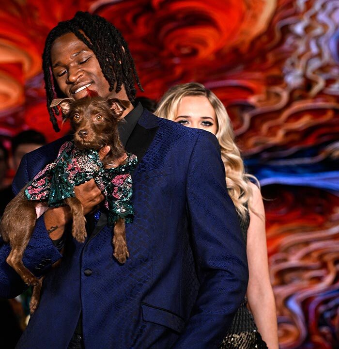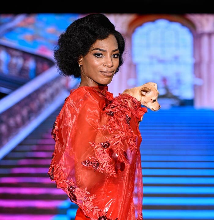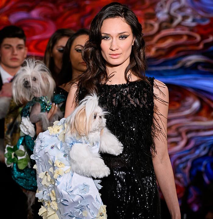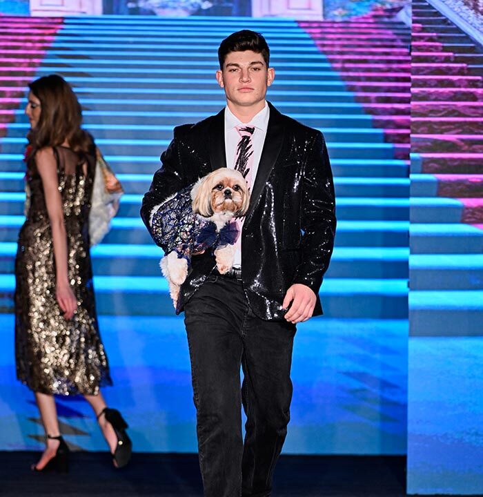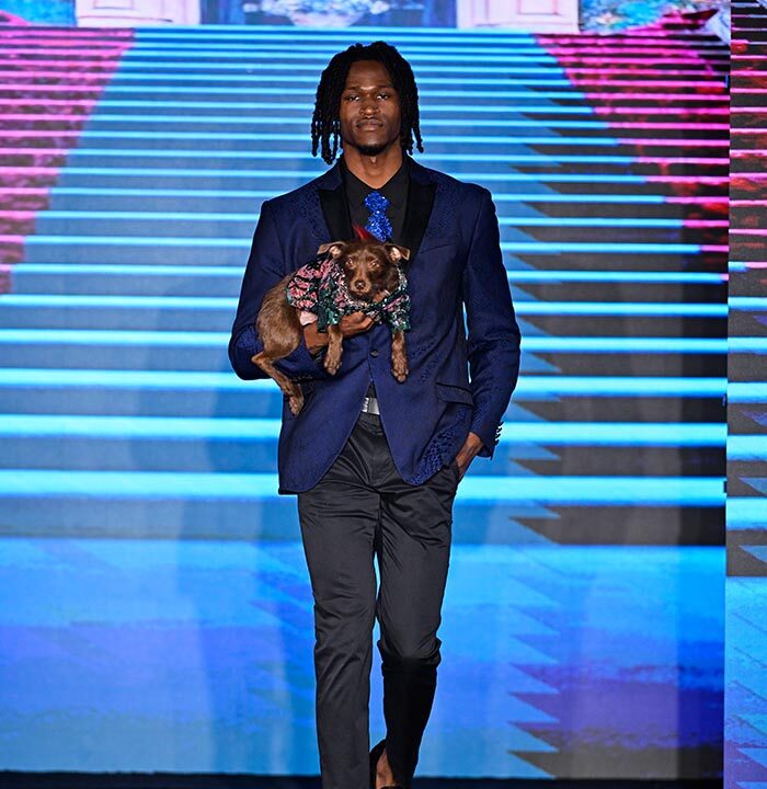 Our four-legged family members being love and joy, so I decided to have them bring about the message that it is time to stop and smell the roses. I designed pet couture utilizing hand made or embroidered roses in colors of roses perfect primarily to bring joy, after all, the Anthony Rubio Designs NYFW shows are known as the feel good shows. I had dogs mostly rescued and adopted from as far as Quebec, Los Angeles and San Antonio Tx to represent my brand on the runway.