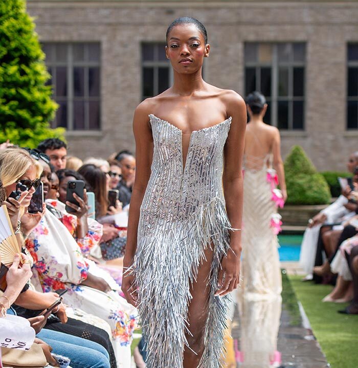 Richie Rich’s return to the runway saw the fusion of old-school extravagance with cutting-edge trends, showcasing looks that were both timeless and ahead of their time. The collection’s exuberant energy was matched by an incredible atmosphere consisting of celebrities and influencers such as Ty Hunter (Beyonce), Qveen Herby, and L’orenzo Hill-White. The show reached its crescendo with Angela Simmons, the surprise celebrity guest who closed the night in a custom, one-of-a-kind wrap dress creation designed to dazzle and delight.