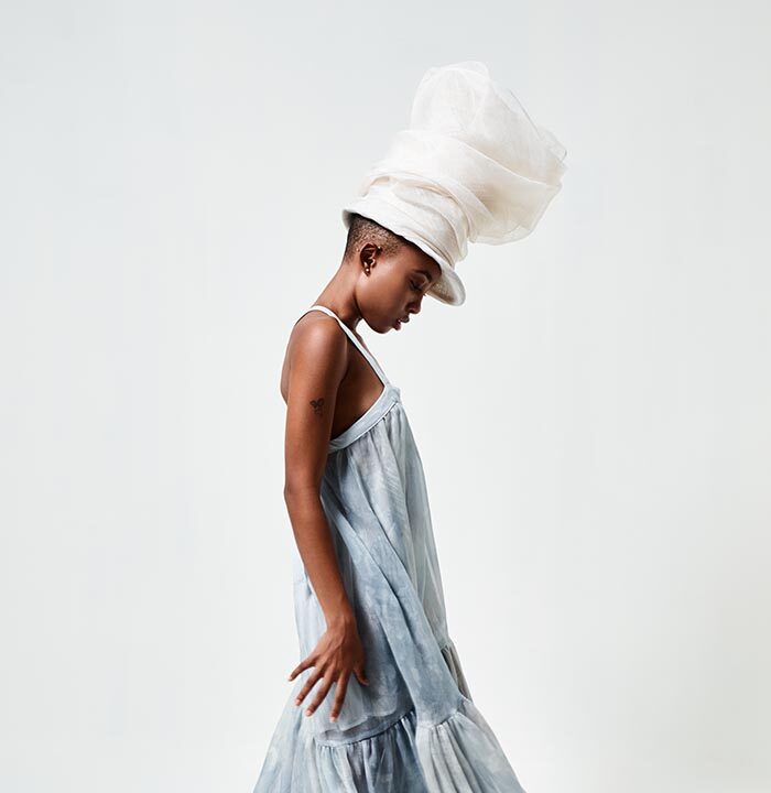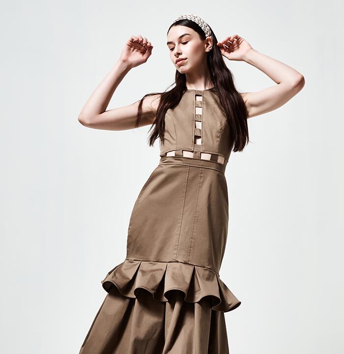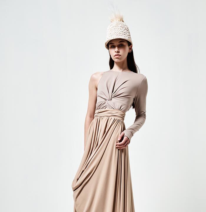 Drawing inspiration from memories of her childhood, Aiste’s first collection was inspired by an ancient Lithuanian folk tale, “Egle the Queen of Serpents” sculpture that Aiste visited as a child in the Lithuanian seaside. It embodies the idea of love, courage and transformation. The collection drapes effortlessly, yet unexpectedly, like the distinct waves of the Baltic Sea.