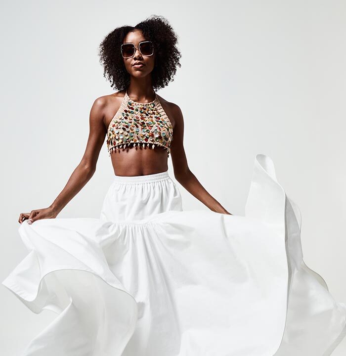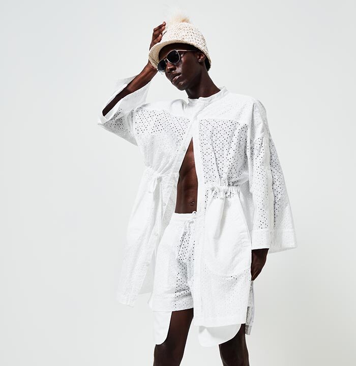 Entitled Urbanoceana, the collection is inspired by visions of the deep sea, the beauty of aquatic life, the warrior Princess Diana on Themyscira, beachy 70s supermodels, African gods and goddesses descended on the sandy beaches of Zanzibar, traditional Japanese workwear and the work of South African photographers Jessica Madavo and Tanatswa Amisi.