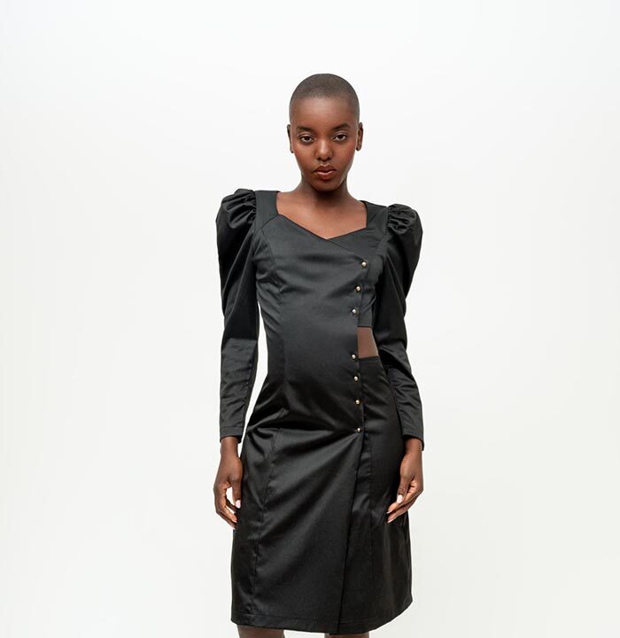 This stunning new line is a tribute to the elegance and versatility of luxury silk, with each piece meticulously crafted from a variety of silks, ranging from soft and delicate to structured and bold. Whether light or heavy, every design is unified by its all-black silk palette, adorned with VivienneHu’s signature gold buttons, creating a striking balance of sophistication and understated glamour.