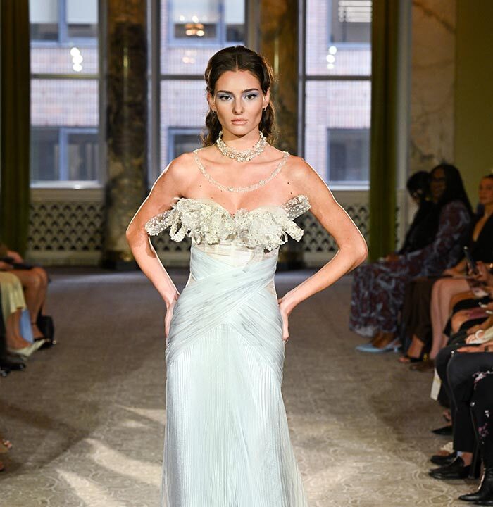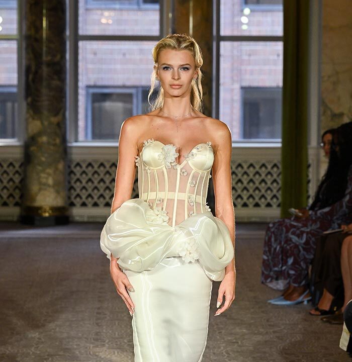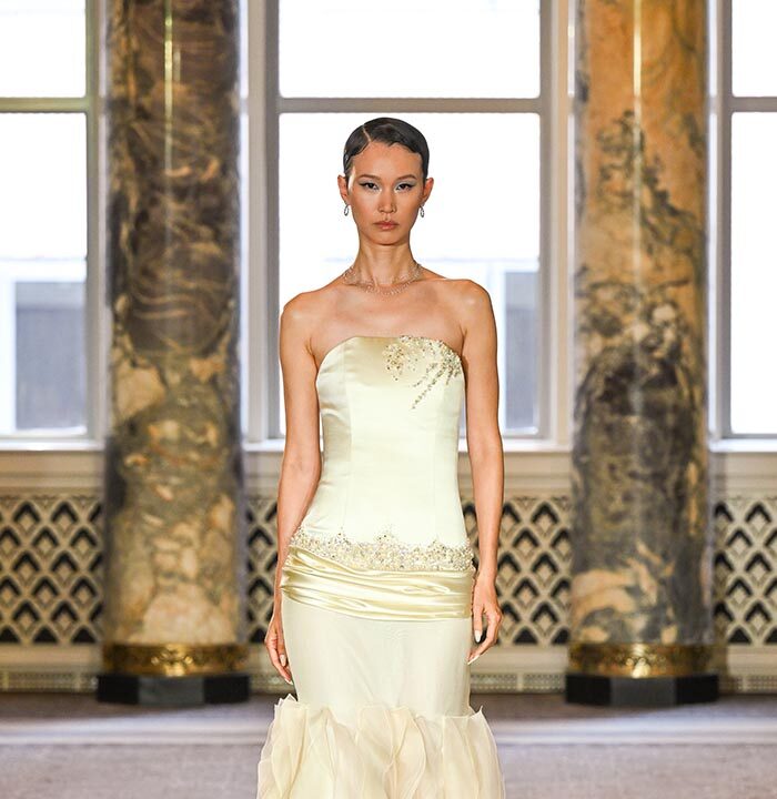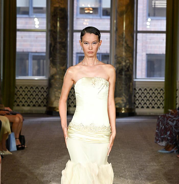 Delicate diamond and gemstone fine jewelry from 64Facets adorned each model, complemented by custom pearl and bijoux-embellished nails by Airi Yamada, while elegant evening footwear from Stuart Weitzman flawlessly completed the ensemble. A soft and ethereal aesthetic was brought to life by makeup artist Grace Ahn, hairstyling by Marcello Costa and Beppe D’Elia, and radiant skin achieved with ‘Then I Met You’ products by Charlotte Cho.