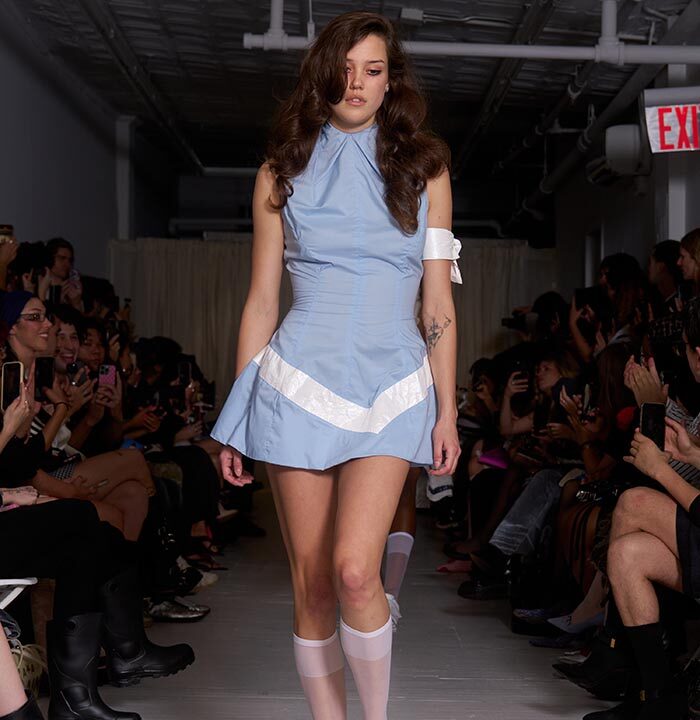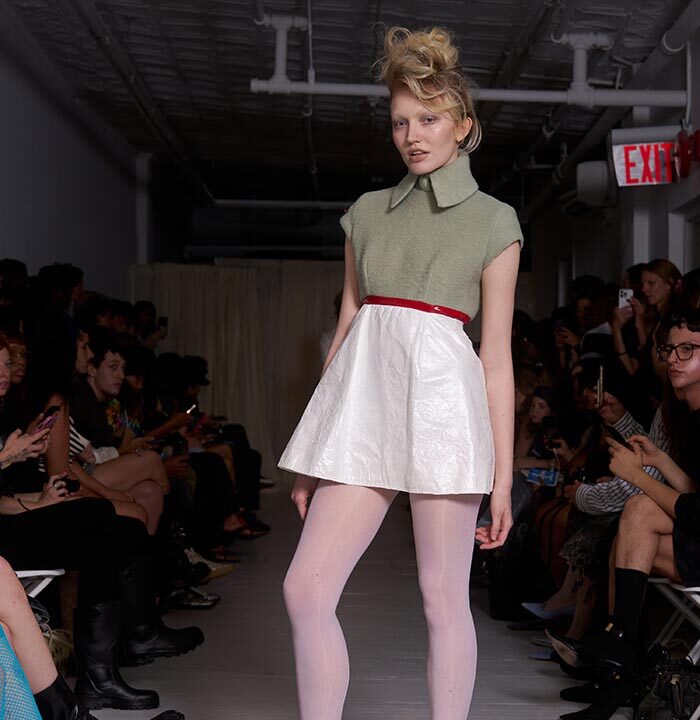 This year’s show parades the wondering promises of midcentury air travel, and the working flight attendant. Formerly christened with A-line uniforms, this season’s flight attendant features midcentury shapes with a taste of flight in our modern era: a bus in the sky.SHOW CREDITS
