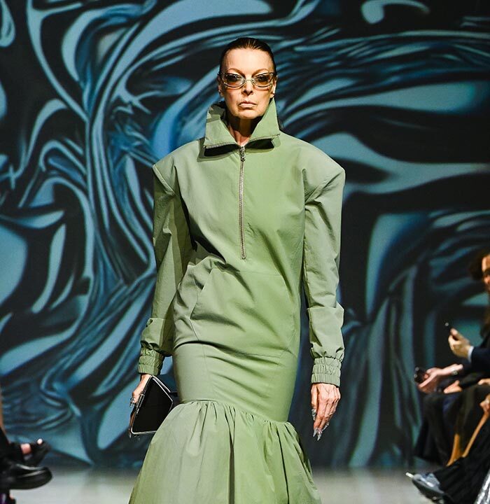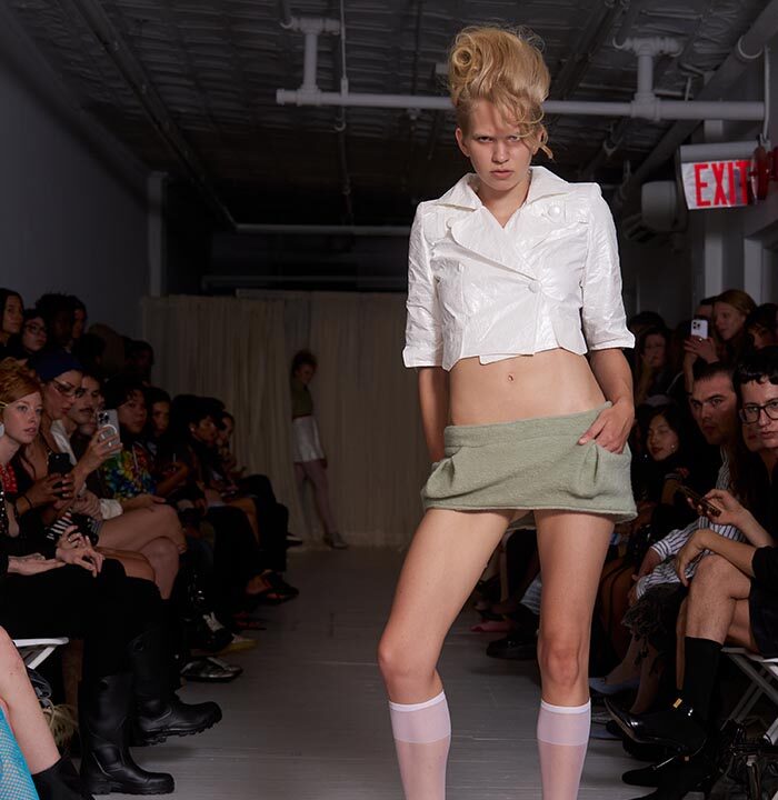 The atmosphere amplified the vibrancy of the designs, underscoring the bold and dynamic vision of designers Anna Shaheen and Anthony Cucculelli. The Thing’s raw, rock-and-roll energy carried the momentum of the runway, weaving music and fashion together into a shared rhythm of romance and rebellion.