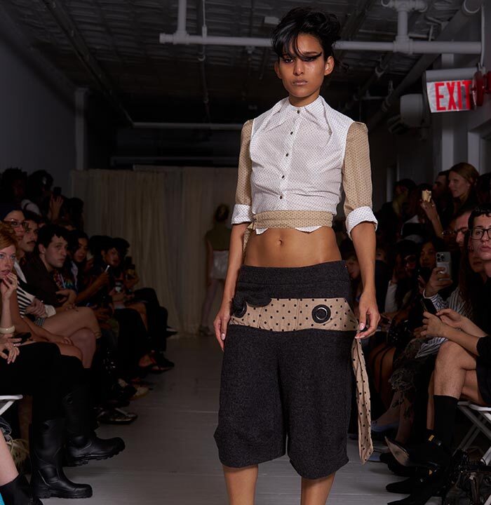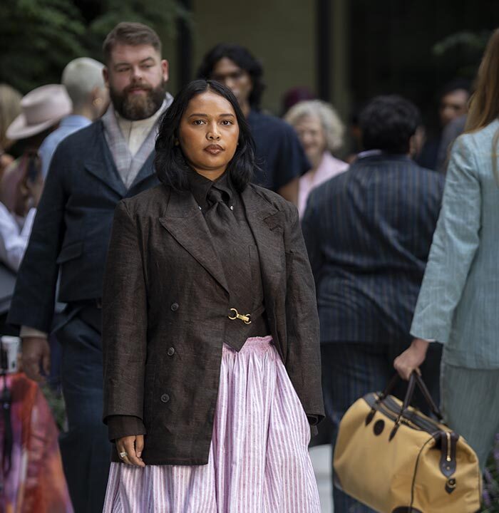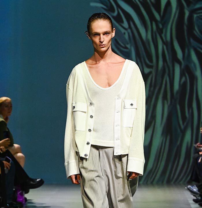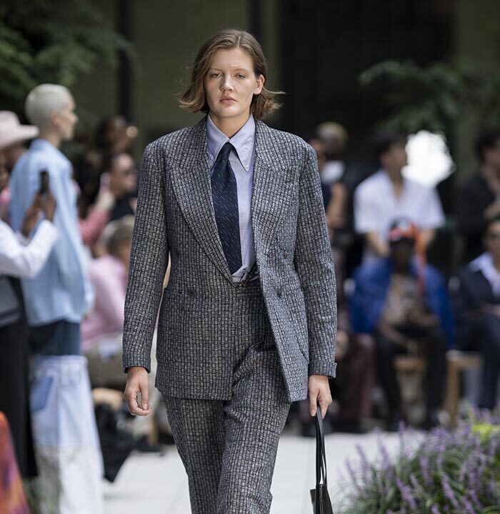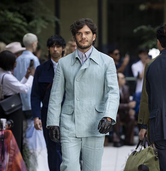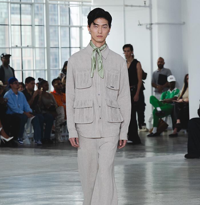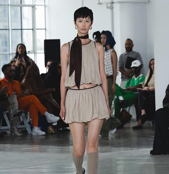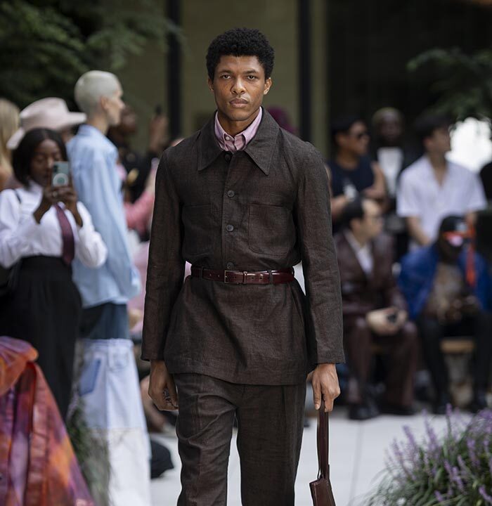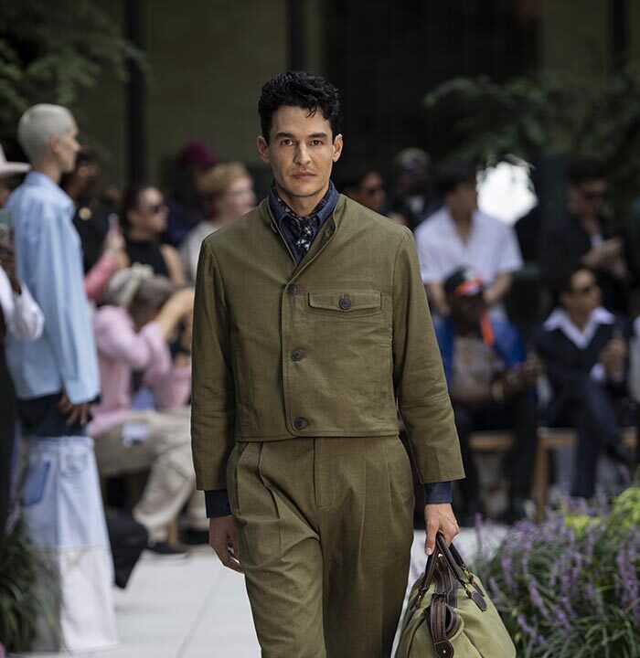 While Fall/Winter 2025’s Hotel SIVAN staged its characters in a luxe interior, this season’s runway transforms into a city boulevard, each look embodying a persona passing through the day. SIVAN’s core of precise, soft tailoring is expanded with functional workwear in vintage cotton drill, airy casual suiting in linen and cotton, and sleek eveningwear in silk dupioni and tropical wools.
