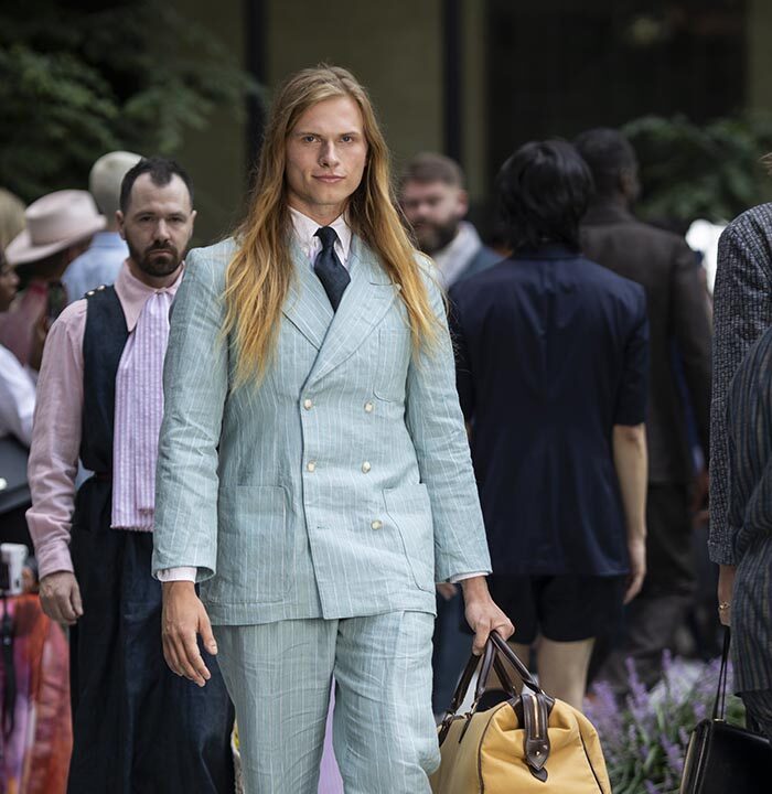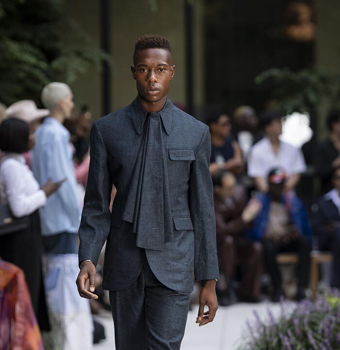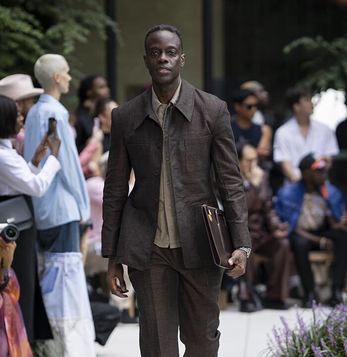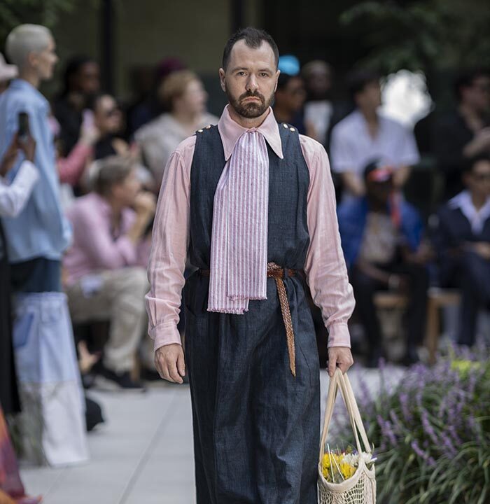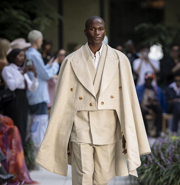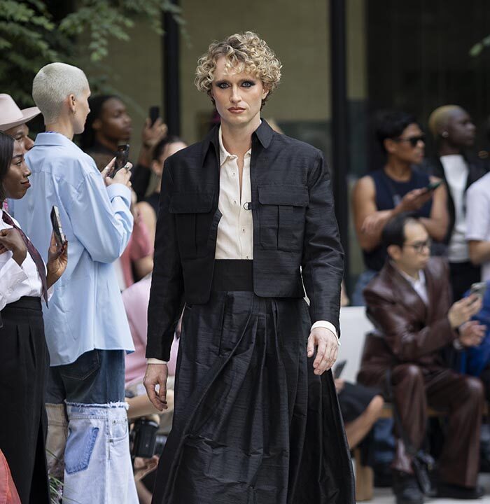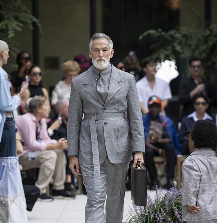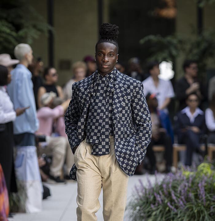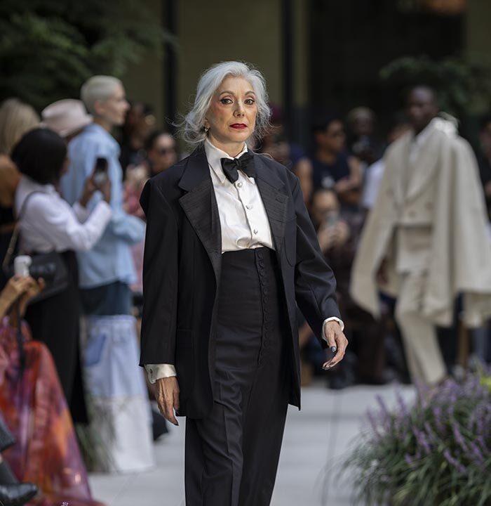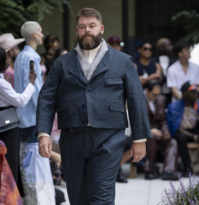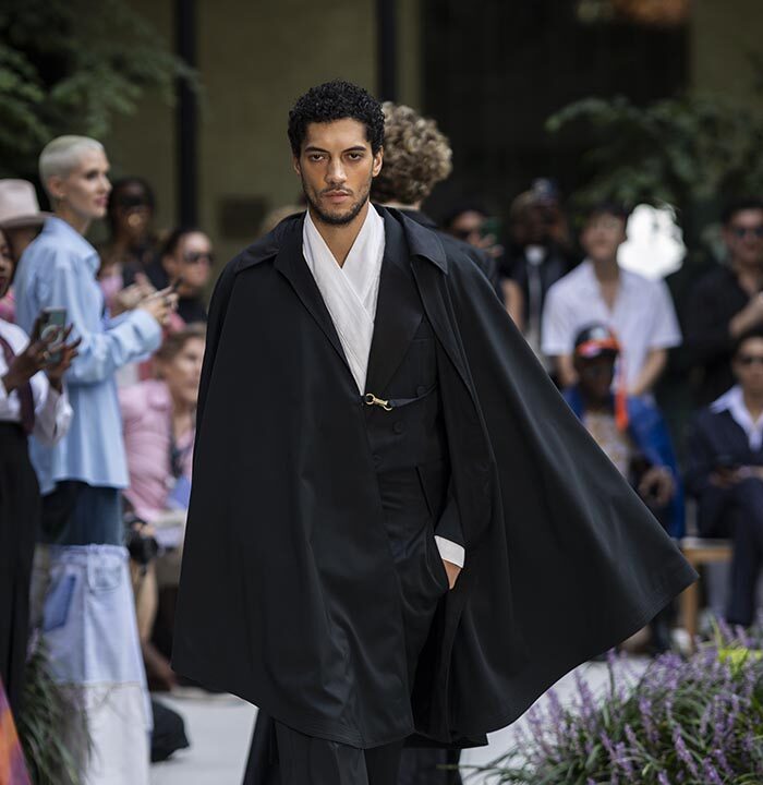 Show casting, too, reflects SIVAN’s bespoke philosophy: models are chosen months in advance so that garments can be created for the individual, a gesture toward inclusivity that is as practical as it is principled. “If my job as a tailor is to make clothes that fit,” Sivan notes, “then it’s only right to show the wide range of people they’re meant to fit.” Models that walked in the show included Paralympic gold medalist Steve Serio, speaker/ actor / writer Aubrey Smalls, journalist & tv host Lauren Ezersky, actor Ato Essandoh, art & style personality Dayle Berke, alongside David Ross Lawn, Phillip Choma, David Hand, and Nikhil Kapoor, among others.