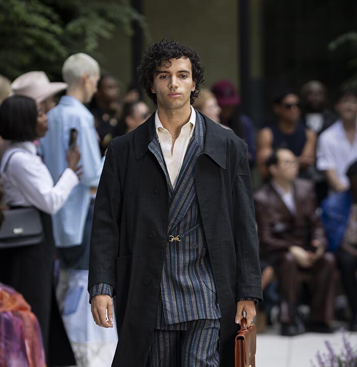 This season also embraces pattern and print with vintage-sourced fabrics, Japanese uneven-yarn cottons, tartans, and geometric silks, underscoring the collection’s narrative of eclectic urban life. The result: a full wardrobe of looks that balance craft and character, tradition and immediacy.