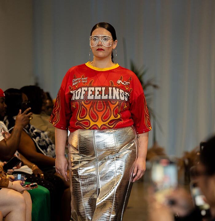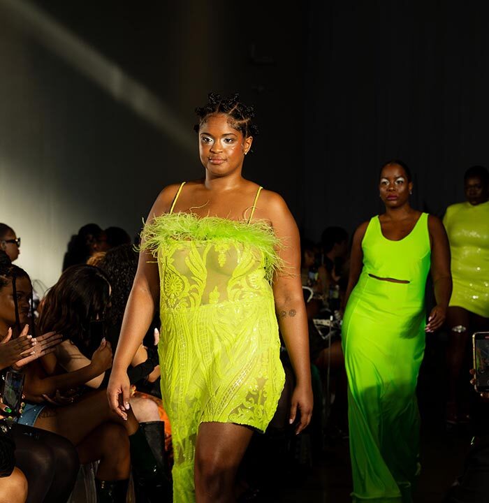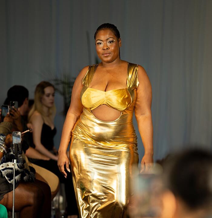 At the heart of SFWRUNWAY was Made in Africa, a segment that spotlighted the creativity and craftsmanship of African designers. By featuring talent such as JahnKoy, Mike Sylla, and Libbie Kimmie, Alabi brought Africa’s rich fashion heritage to the global stage. Each designer presented unique collections that fused African traditions with contemporary aesthetics, capturing the attention of the international fashion community. From JahnKoy’s Brooklyn-inspired African streetwear to Mike Sylla’s street-art-infused leather pieces, the Made in Africa segment celebrated modern interpretations of African fashion while preserving the cultural richness of the continent. Naomi’s love for Africa was apparent in every detail, from the live talking drum performance by WALE to the authentic African hors d’oeuvres and cocktails served by Pinaq. “Africa has a long history of craftsmanship,” Alabi explained. “With improvements in shipping, communication, and a growing, educated workforce, Africa is now poised to lead in sustainable fashion practices. I want to bring more attention to the region’s potential through my work.” In a fashion world increasingly focused on sustainability, Alabi believes that Africa will play a key role in the industry’s future, and Made in Africa was a bold statement of this belief.NYFW Curve: Promoting Body Inclusivity and Self-Love