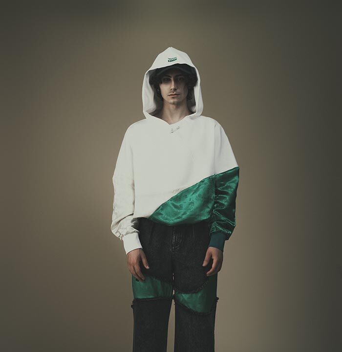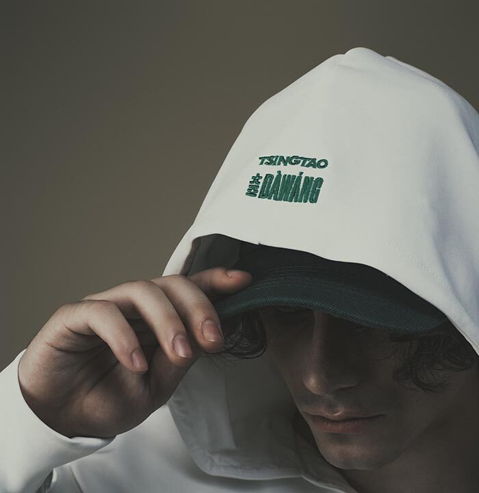 In addition to pink hues infused into the collection that call to mind Qingdao’s blossoms in spring, vibrant greens and reds also make an appearance throughout the offering, echoing both the Tsingtao Beer logo as well as the city’s famous landscape of red-tiled roofs framed by lush greenery, or ‘红瓦绿树’. Limitededition pieces, from jackets to accessories, further honor the craftsmanship and legacy of both brands.
