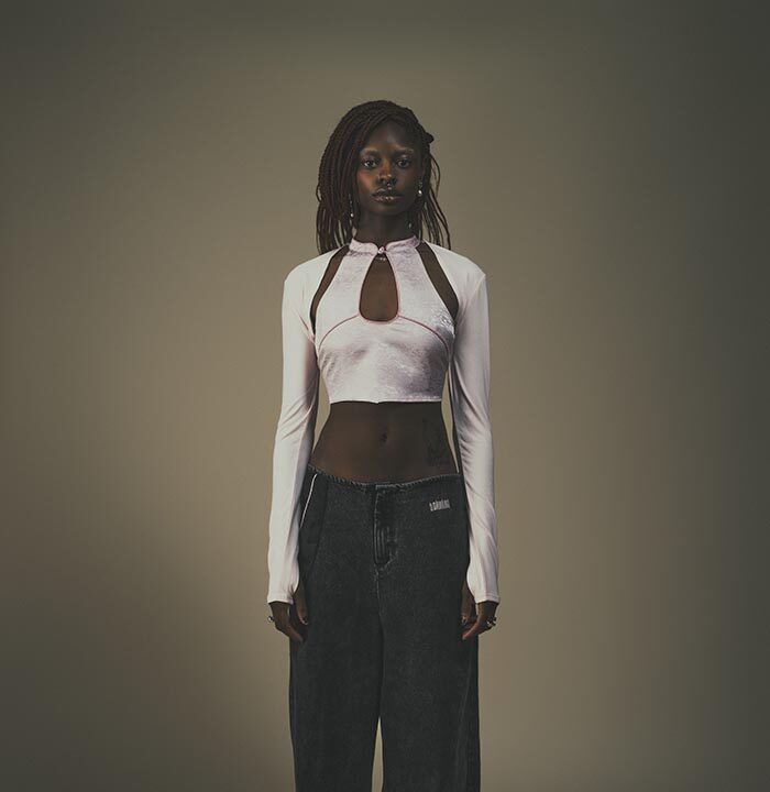 In honor of DAWANG’s fifth anniversary, the brand continues to celebrate its commitment to bridging East and West, while also introducing another juxtaposition of seemingly opposite aesthetics – ballet and varsity. DAWANG revisits its inaugural all-black aesthetic, now reimagined with a fresh infusion of bold color combinations. The latest offering is softened with details inspired by a ballet aesthetic, redefining “ballet-core” with the incorporation of luxurious brocade fabrics and adapting the traditionally soft, elegant hues for everyday wear. Three distinct shades of pink were introduced to set the collection apart from the typical black-and-pink pairings, embracing a more playful vibe, while also referencing the various shades of Qingdao’s spring blossoms. The soft ballet-inspired details are counterbalanced with a nod to street wear and varsity motifs, a continuation of DAWANG’s seamless fusion of worlds that on the surface may seem opposite, but at their core are much alike. Standout pieces include reversible jackets, brocade mini-dresses, and wide-leg jeans featuring brocade inserts.