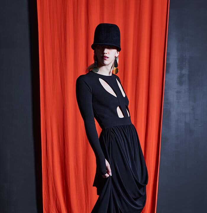 Mila Krasna is a perfect reflection of its charismatic owner, Minka Rozman. Conceived in Ljubljana, a European city known for its mesmerizing mix of baroque architecture and social modernism, these garments are both slinky and streamlined. Mila Krasna uses complex strapping, cutouts, inserts, and paneling which draw on Minka’s education as both a fashion and costume designer.