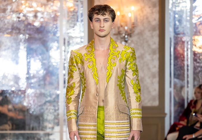 JASIVE presented Simbolo Cuadra — not just a collection, but a powerful declaration of rebirth after 25 years in fashion. Unveiled at the legendary Hôtel Plaza Athénée in Paris, the line reflects a mature evolution of identity, balancing feminine fluidity with masculine structure through noble leathers, liquid silks, hand-stitched lace, jacquards, and intricate embroidery.