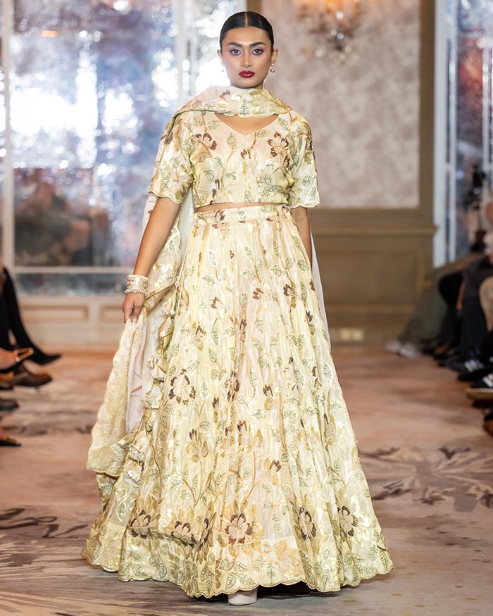 Mohikas, the US-based luxury fashion house founded by visionary designer Archana Soni, unveiled a radiant new collection that paid homage to traditional Indian craftsmanship while embracing global couture elegance. Rich in jewel tones, intricate embroidery, and opulent textures, the collection featured hand-embellished lehengas, sculpted blouses, regal capes, and tailored menswear rooted in heritage yet styled for the modern world. From soft ivory silks and gold metallic weaves to bold contrasts of fuchsia and marigold, each look celebrated the grandeur of ceremonial attire with a contemporary, international sensibility.