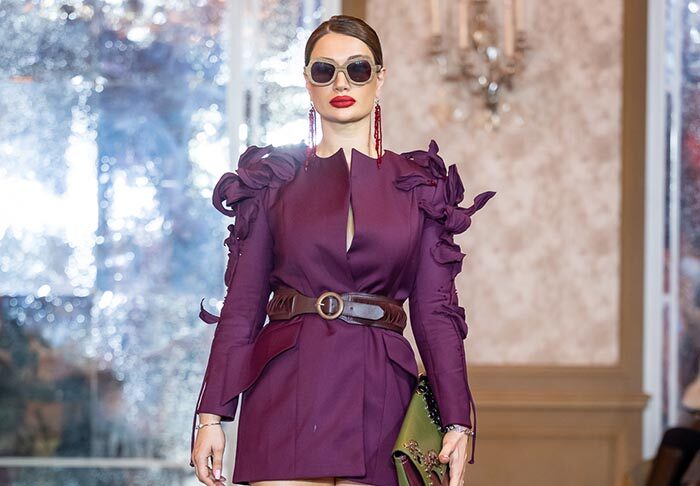 Tinatin Magalashvili, founder and creative director of TINATIN MAGALASHVILI, in collaboration with Gurosi Bags and Otanadze Design, unveiled a powerful collection that embodied strength wrapped in elegance. Structured silhouettes in deep burgundy, black, and jewel tones were accented with sculptural ruffles, bold accessories, and statement eyewear — redefining modern femininity with confidence and charisma. Each look spoke to the woman who leads with intention — fearless yet refined, expressive yet sophisticated.