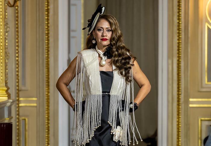 Each of the twenty haute couture looks represents a “cuadra” — a personal life chapter translated into design — paying homage to the women who shaped the designer’s journey. Every detail celebrates artisanal excellence, from sculpted boots to pearl embellishments, resulting in silhouettes that are timeless, emotional, and deeply personal.