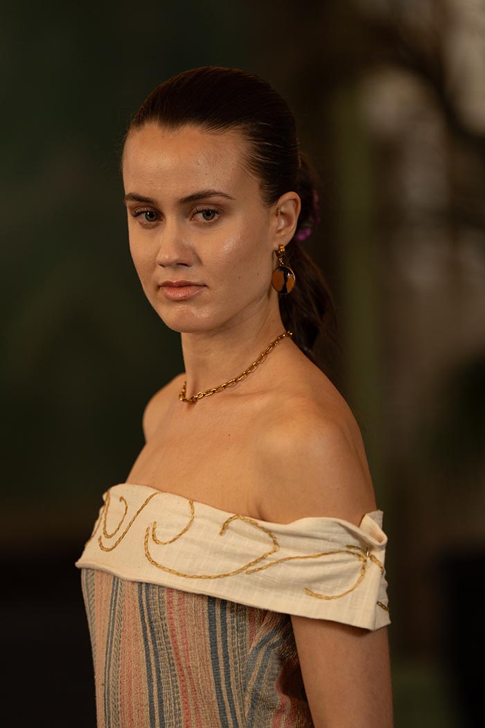 The brand’s identity is built on empowerment, with bold, sculptural designs that are timeless and full of meaning. Her latest collection, Gaia – Origins, is a tribute to her mother and the earth, exploring the strength of roots and the growth that follows loss. With earthy tones, organic shapes, and textured finishes, the collection feels raw, feminine, and symbolic—capturing the beauty of transformation in every piece.