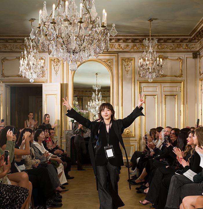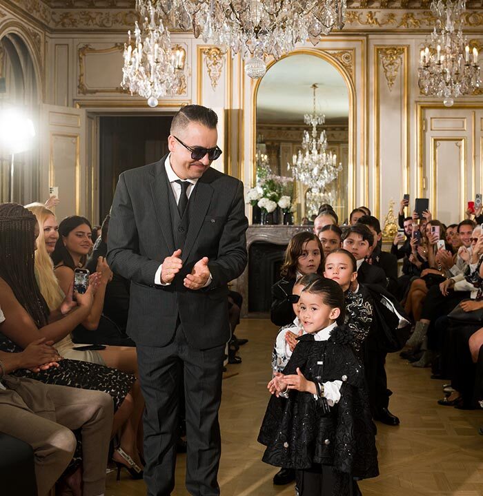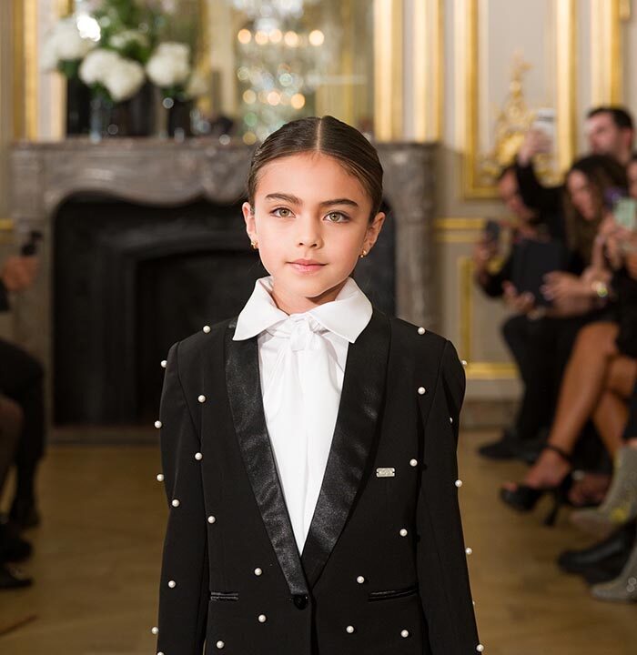 KEZIAH BKK is a fashion brand based in Thailand, created by two incredibly talented young sibling artists: HERO-Wajana Chumpuang, 11 years old, and WINNY-Keziah Chumpuang, 10 years old. The siblings transform their art paintings into unique clothing patterns and designs, bringing a distinct narrative to the runway by blending art and fashion. Their signature take on femininity redefines what it means to be a “modern romantic.” Drawing inspiration from their artwork, KEZIAH BKK strikes the perfect balance of strength and softness, with joyful, eclectic details and bold, intricate textures and patterns. Keziah’s dresses are particularly mesmerizing as they float down the runway in gentle arrays of pastel colours and flouncy folds of fabric. Their dynamic work positions them as fresh voices in the Paris fashion scene.