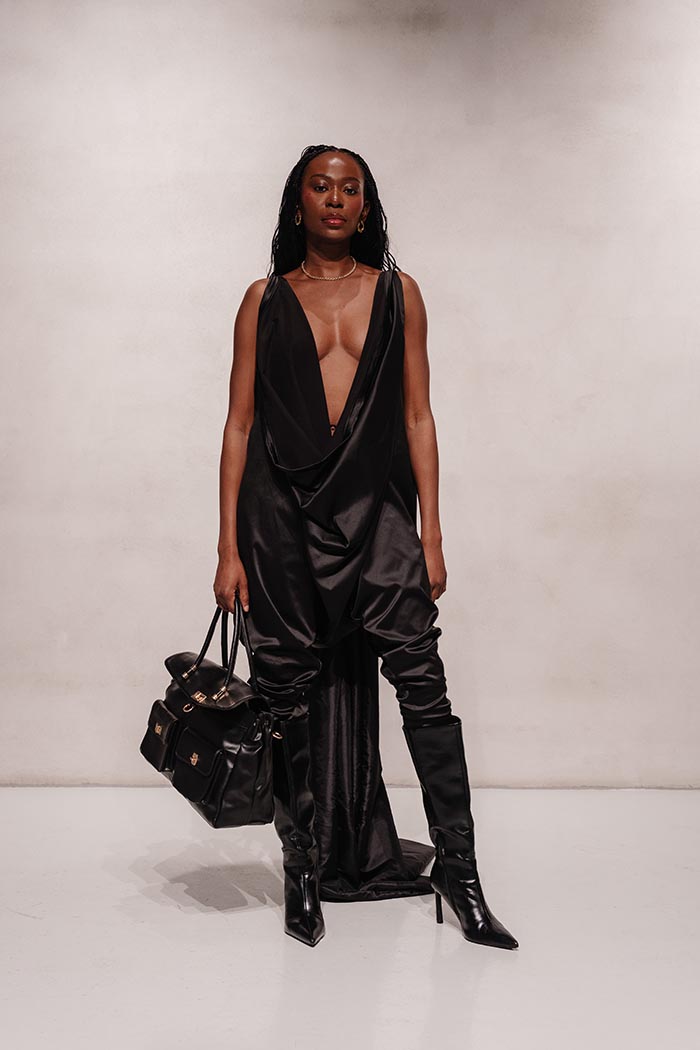 Silhouettes are clean, intentional, and precise. Exposure is deliberate, never decorative. Sensuality is present, without performance. Inspired by the restraint of 90s minimalism, stripped-back 70s silhouettes, and moments of personal emancipation, the collection introduces a new language of power: dignity after rupture.