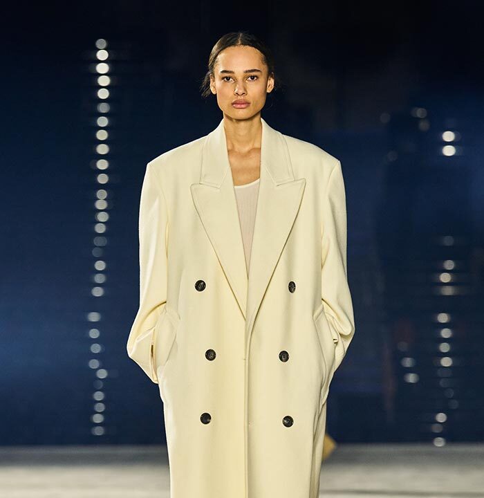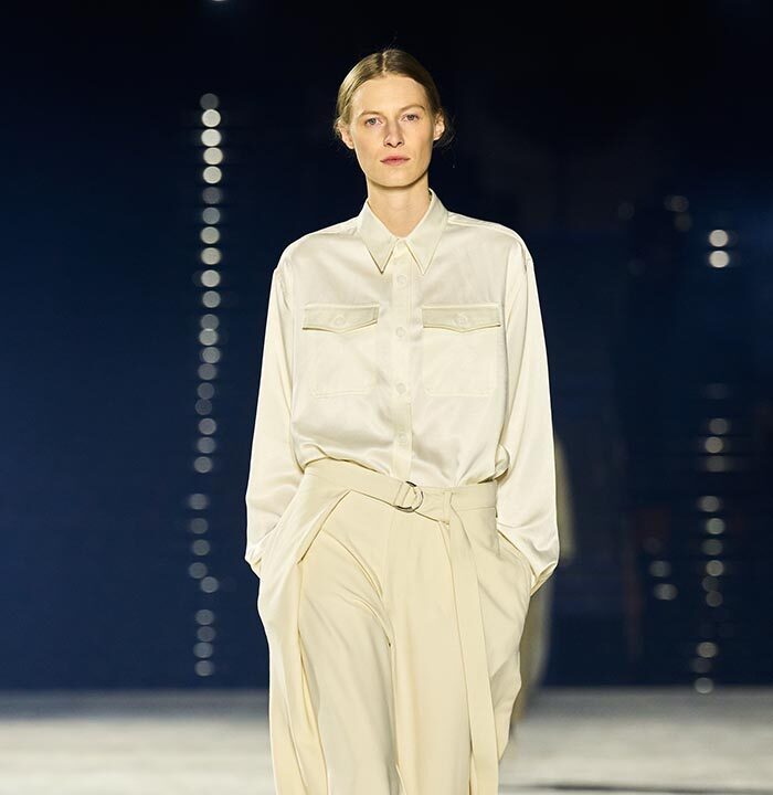 The specific codes that define AMI and its modernity are reinforced to create an even richer universe. The wardrobe’s fundamentals are reinterpreted in a more elevated way: their shapes are very authentic in their details, with a silhouette as relaxed and refined as easy to wear. Womenswear gets inspiration from the men’s wardrobe yet remains soft and romantic.
