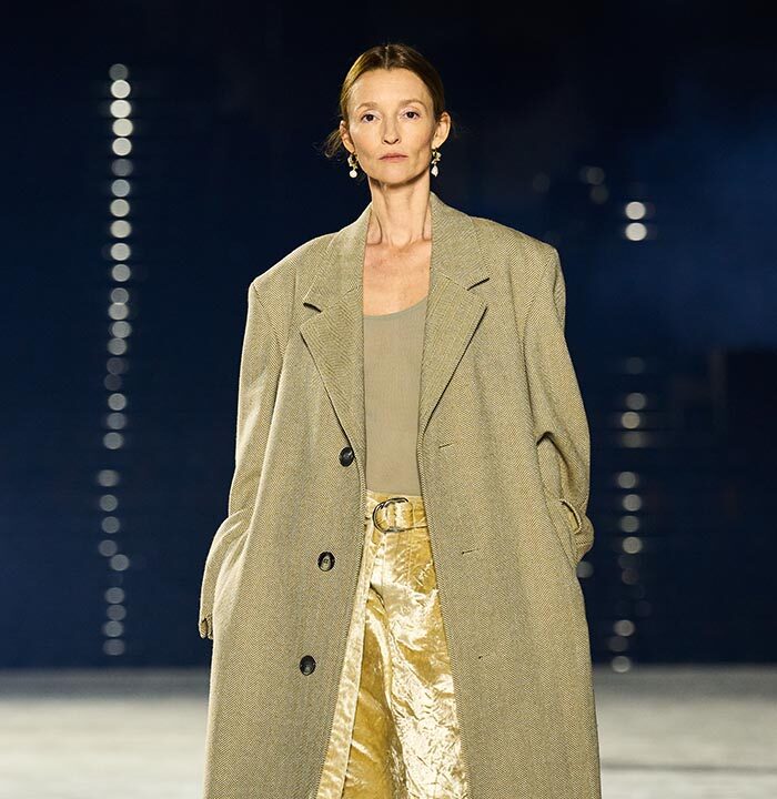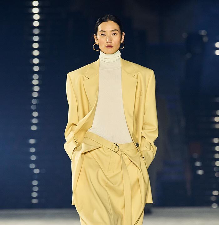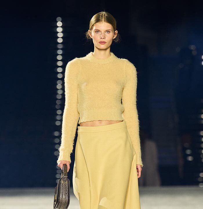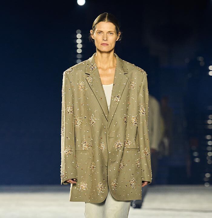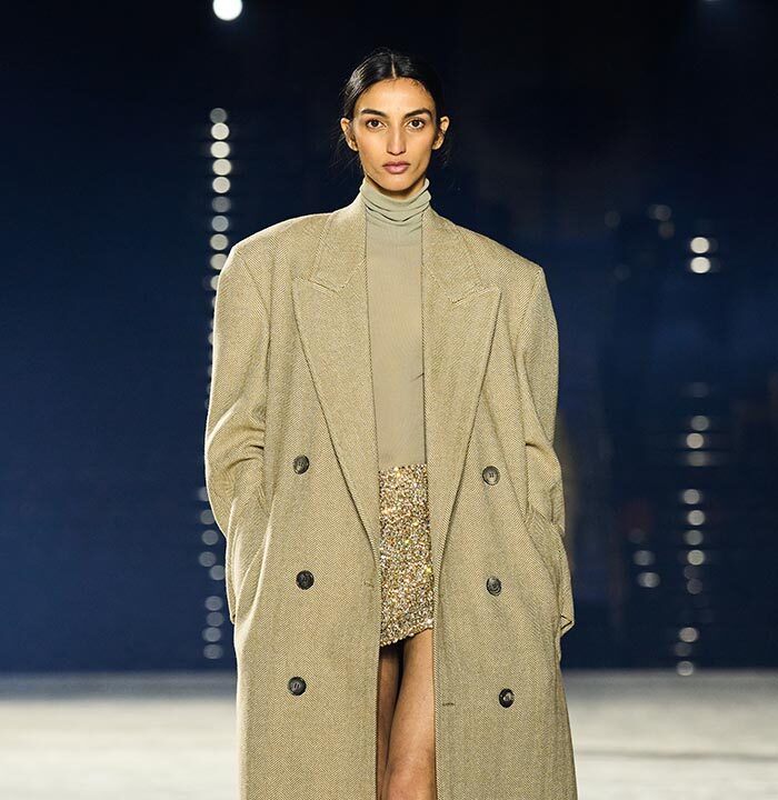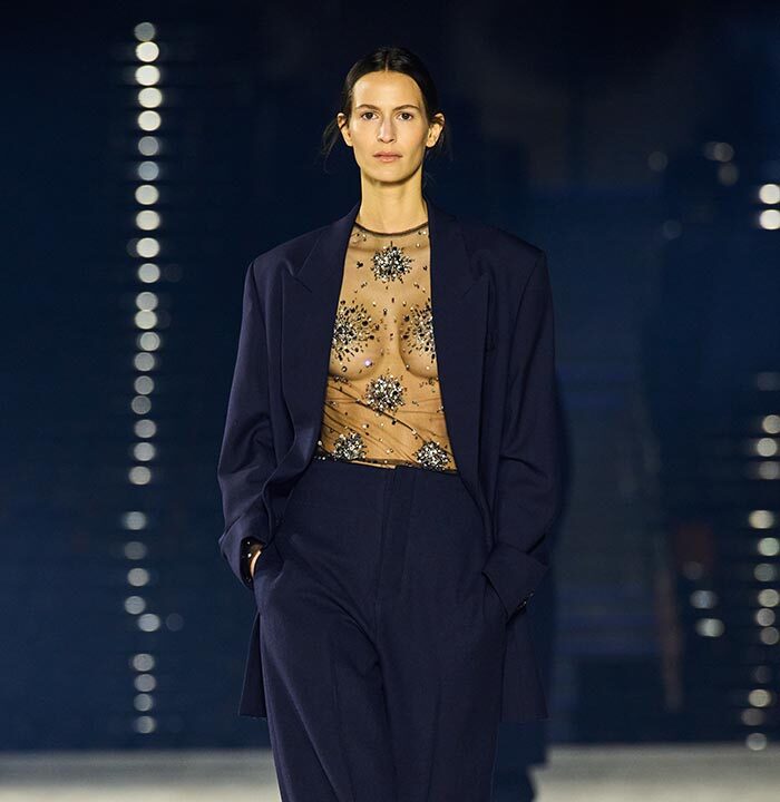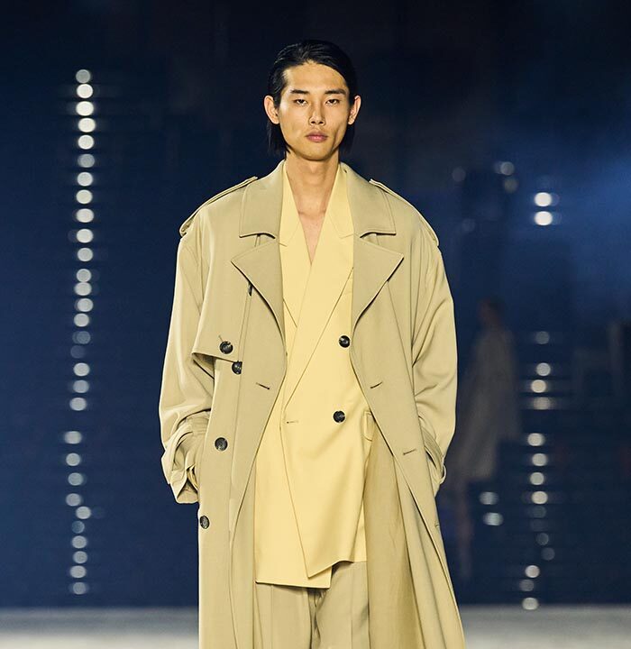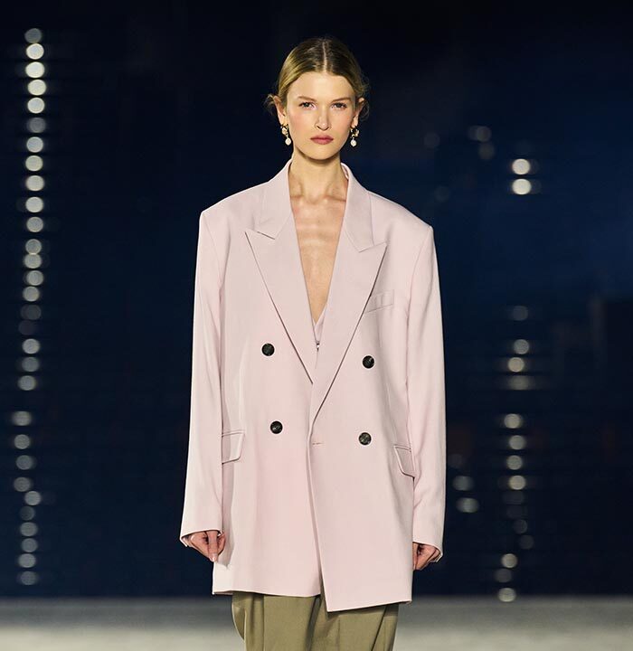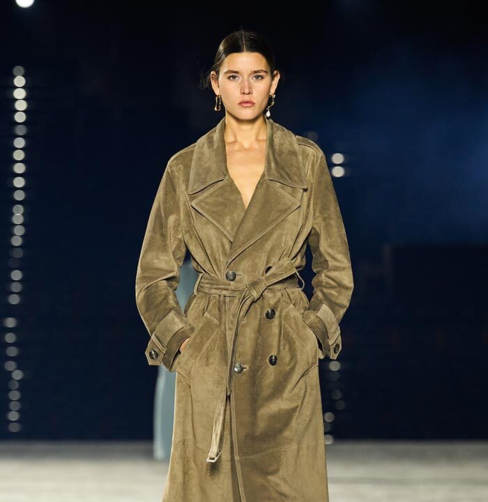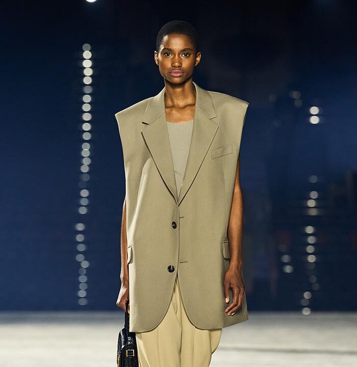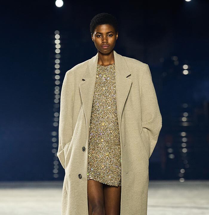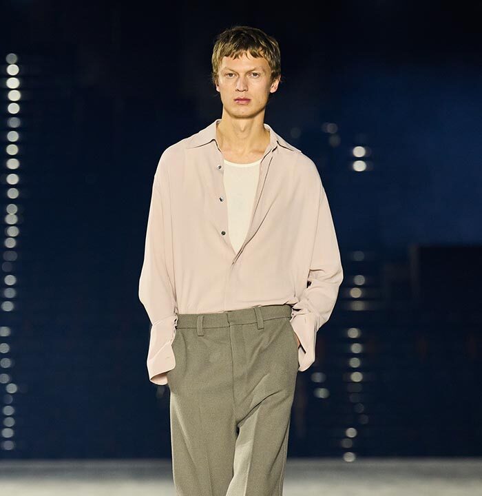 The color palette is poetical and harmonious, contrasting and sophisticated. Paired with sartorial darker tones, neutral and dusty pastel tones confer the collection much lightness. Soft and lush, crushed, brushed or fluffy, yet always on the light side, fabrics include silk, alpaca and cashmere. Luxurious embroideries are layered on sartorial, menswear-inspired pieces, adding character and artistry.