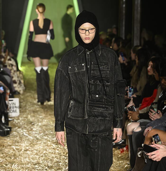 PRIVATE POLICY New York FW24 collection focuses on new frontiers opened by the emergence of AI. Exploring the dichotomy between fear and excitement, lawlessness and freedom, we look back at classic 19th century Americana but with a modern take, weaving a narrative of aesthetics intertwined with cowboy workwear details from the Wild West.