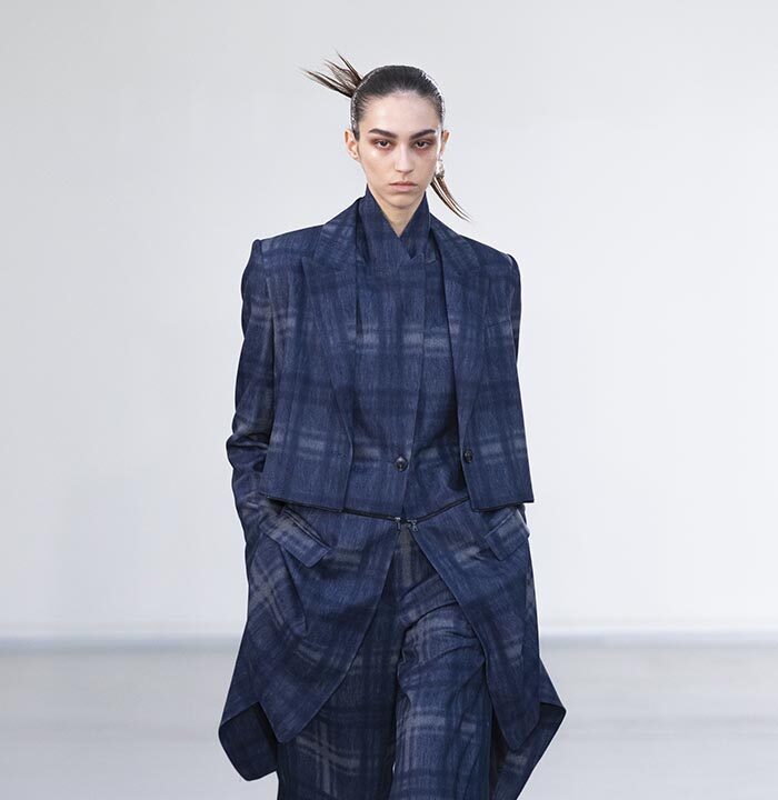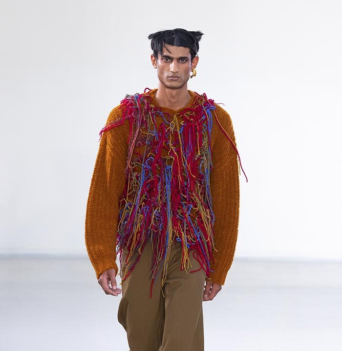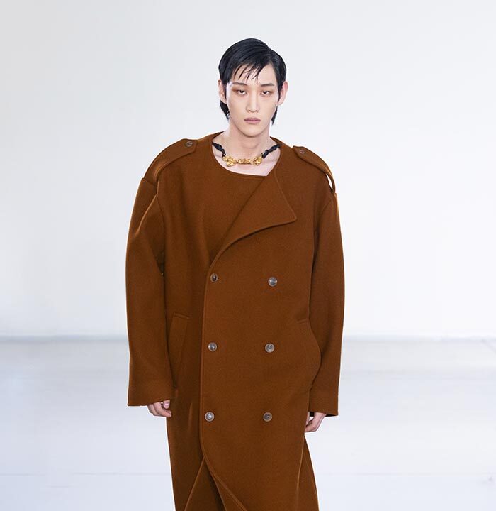 In a palette of rich browns and deep sand, punctuated with flashes of indigo, maroon, and golden turmeric, as ever, texture is key, as luxurious jacquards and frayed seams rub up against a unique trompe l’oeil motif that from afar appears like mohair. With the clothes taking on the role of canvas, details drawn from Emily Karaka’s works breathe life into the offering in new and unique ways. Seen across a succession of garments, the artist’s brushstrokes are reinterpreted in technicoloured thread, her etchings and words of resistance embroidered across chests and up and down sleeves, as Hoor weaves her words and images into the fabric of QASIMI until each look tells not one, but two stories. As Hoor hones in on Karaka’s seminal painting “He Kakano Ahau” (2014-2015), the language they use may not be the same but commonalities are easily found in the way they communicate creatively. “Renowned Māori painter Emily Karaka’s use of colour, language and text to depict Māori land rights and historic treaties, was the inspiration behind the AW25 Collection. Through bold prints, intricate embroideries and changeable silhouettes, this collection reflects not only the ongoing struggle for Māori rights but also other indigenous struggles around the world. Karaka often references other oppressions and colonial histories as an expression of solidarity – something we all need to do at this present time” Hoor Al Qasimi.