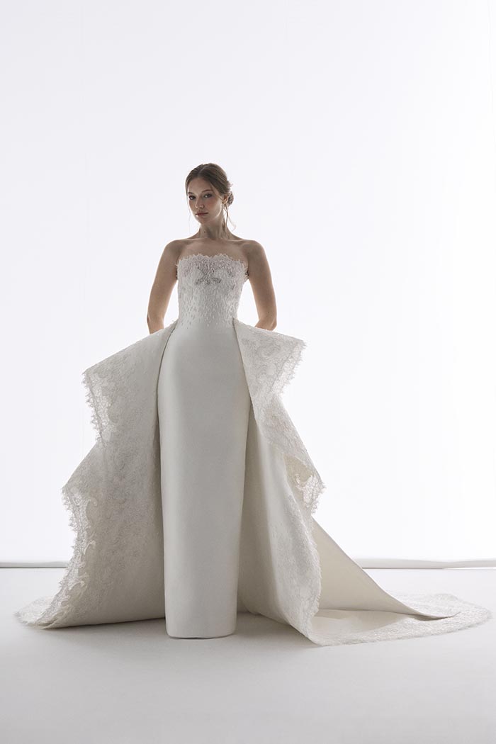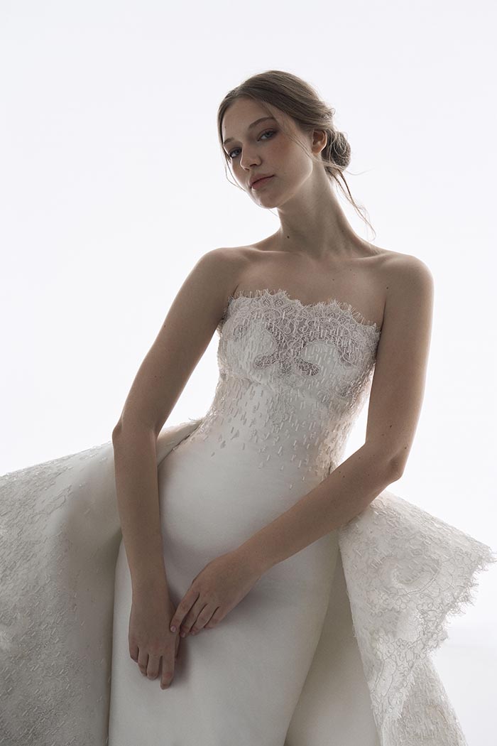 The collection delivers a refined, contemporary vision of bridal couture—streamlined, versatile, and rooted in the brand’s signature elegance.