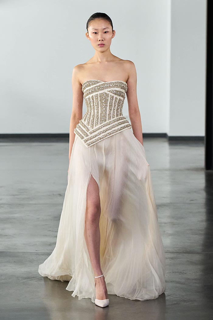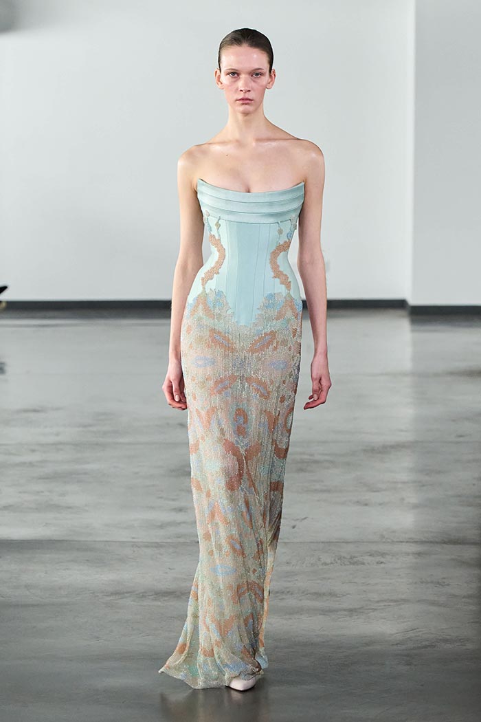 Inspired by the philosophy of Rumi, the 13th-century Persian mystic poet for whom rupture itself holds profound beauty, the collection traces a journey of transformation and reconciliation. Fragments emerge within the silhouettes before gradually coming together, forming a luminous whole imbued with softness and near-spiritual clarity. Through his singular savoir-faire, Al Ali translates this timeless vision into a serene, feminine couture that looks resolutely toward the future.